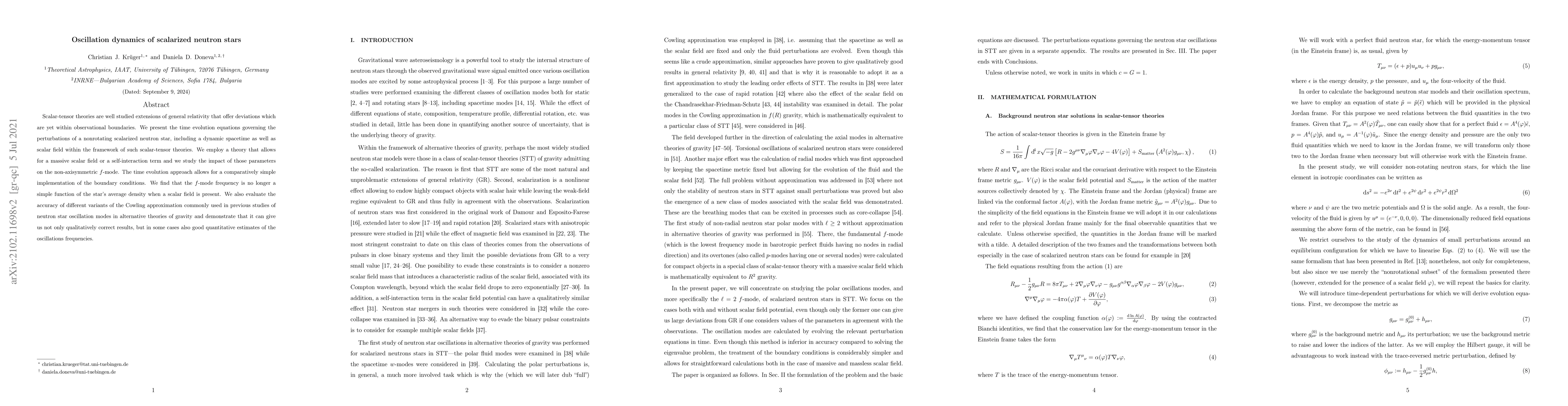 Scalar-tensor theories are well studied extensions of general relativity that offer deviations which are yet within observational boundaries. We present the time evolution equations governing the perturbations of a nonrotating scalarized neutron star, including a dynamic spacetime as well as scalar field within the framework of such scalar-tensor theories. We employ a theory that allows for a massive scalar field or a self-interaction term and we study the impact of those parameters on the non-axisymmetric $f$-mode. The time evolution approach allows for a comparatively simple implementation of the boundary conditions. We find that the $f$-mode frequency is no longer a simple function of the star's average density when a scalar field is present. We also evaluate the accuracy of different variants of the Cowling approximation commonly used in previous studies of neutron star oscillation modes in alternative theories of gravity and demonstrate that it can give us not only qualitatively correct results, but in some cases also good quantitative estimates of the oscillations frequencies.