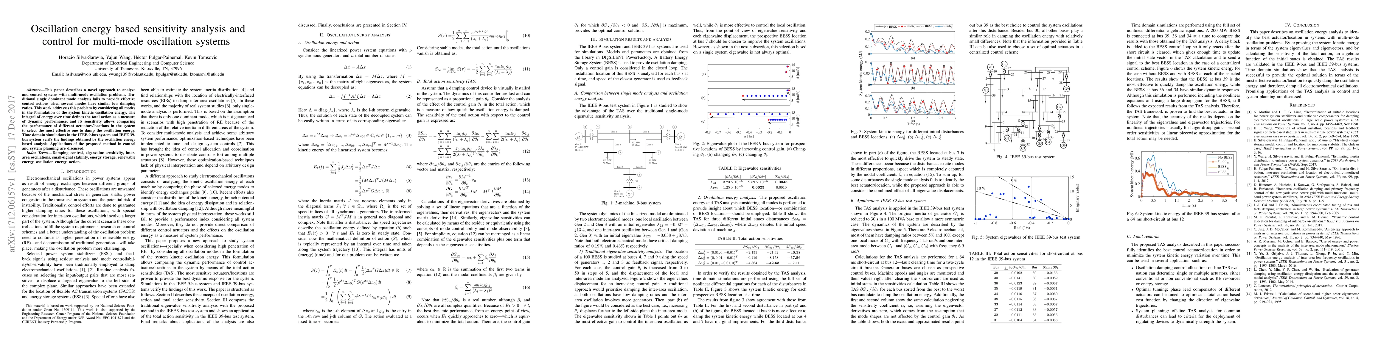 This paper describes a novel approach to analyze and control systems with multi-mode oscillation problems. Traditional single dominant mode analysis fails to provide effective control actions when several modes have similar low damping ratios. This work addresses this problem by considering all modes in the formulation of the system kinetic oscillation energy. The integral of energy over time defines the total action as a measure of dynamic performance, and its sensitivity allows comparing the performance of different actuators/locations in the system to select the most effective one to damp the oscillation energy. Time domain simulations in the IEEE 9-bus system and IEEE 39-bus system verify the findings obtained by the oscillation energy based analysis. Applications of the proposed method in control and system planning are discussed.