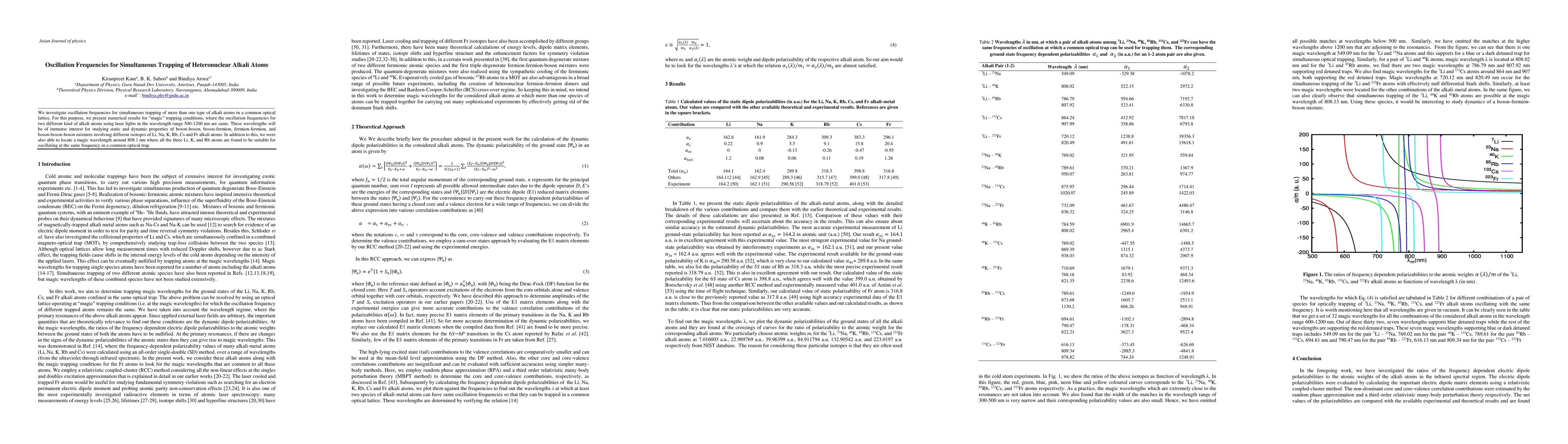 This paper investigates oscillation frequencies for trapping multiple types of alkali atoms in a shared optical lattice, finding numerical results for magic wavelengths where different alkali atoms oscillate at the same frequency. These findings are significant for studying various mixtures of alkali atoms and identifying a specific wavelength where three different types of atoms can be trapped simultaneously.