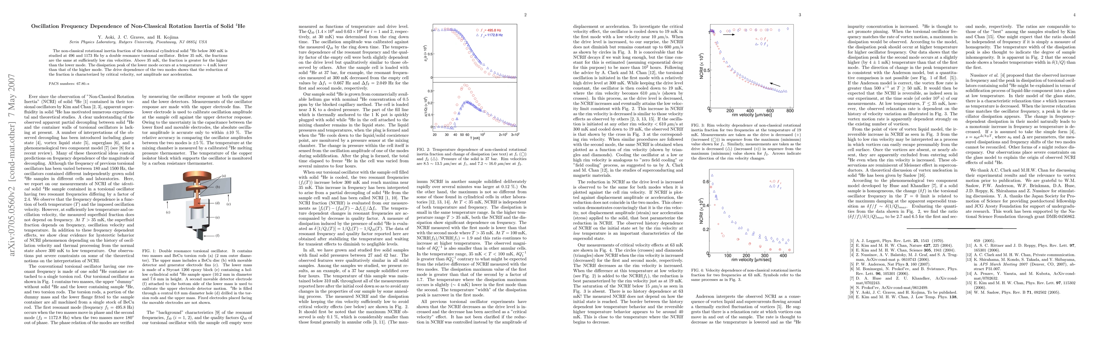This study investigates the non-classical rotational inertia of solid $^4$He at low temperatures and different oscillation frequencies, finding that above 35 mK, higher frequencies exhibit greater inertia fractions and a lower dissipation peak. The critical velocity, rather than amplitude or acceleration, influences the reduction in inertia fraction.