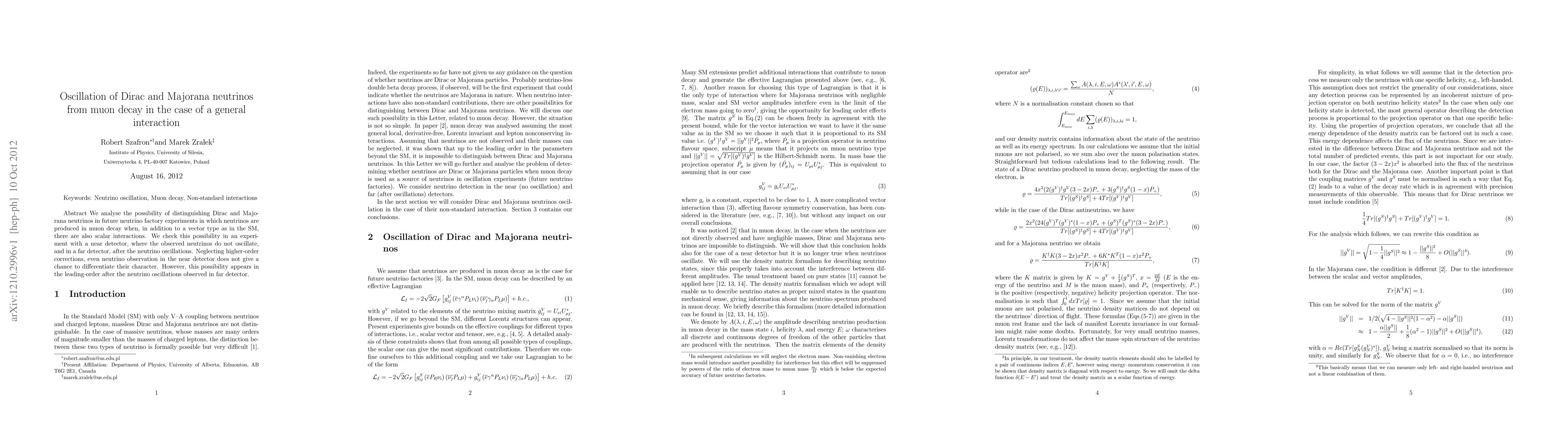 This paper explores the potential to distinguish between Dirac and Majorana neutrinos in future neutrino factory experiments, considering both vector and scalar interactions beyond the Standard Model. While near-detector observations alone are insufficient, neutrino oscillations detected in the far detector provide a leading-order method for this distinction.