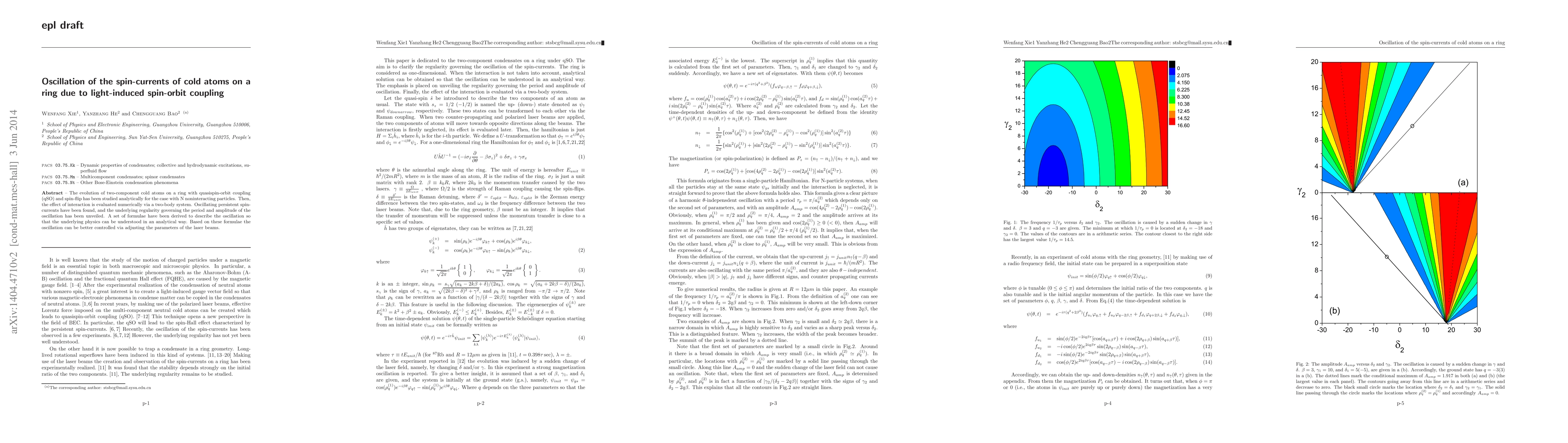 The evolution of two-component cold atoms on a ring with quasispin-orbit (qSO) coupling and spin-flip has been studied analytically (for arbitrary particle number $ N $ without interaction) and numerically (for a few-body system with interaction). Counter-propagating and oscillating persistent spin-currents have been found. The regularity governing the period and amplitude of oscillation has been clarified. When the strengths for the qSO coupling and spin-flip are fixed, the frequency of oscillation can be effectively tuned by the Raman detuning, while the amplitude can be tuned by either changing the initial status and/or the Raman detuning. When the initial numbers of atoms of the two-components $N_{1}$ and $N_{2}$ are close to each other, the oscillation will be seriously suppressed. The condition for maximizing the amplitude of oscillation is given.
