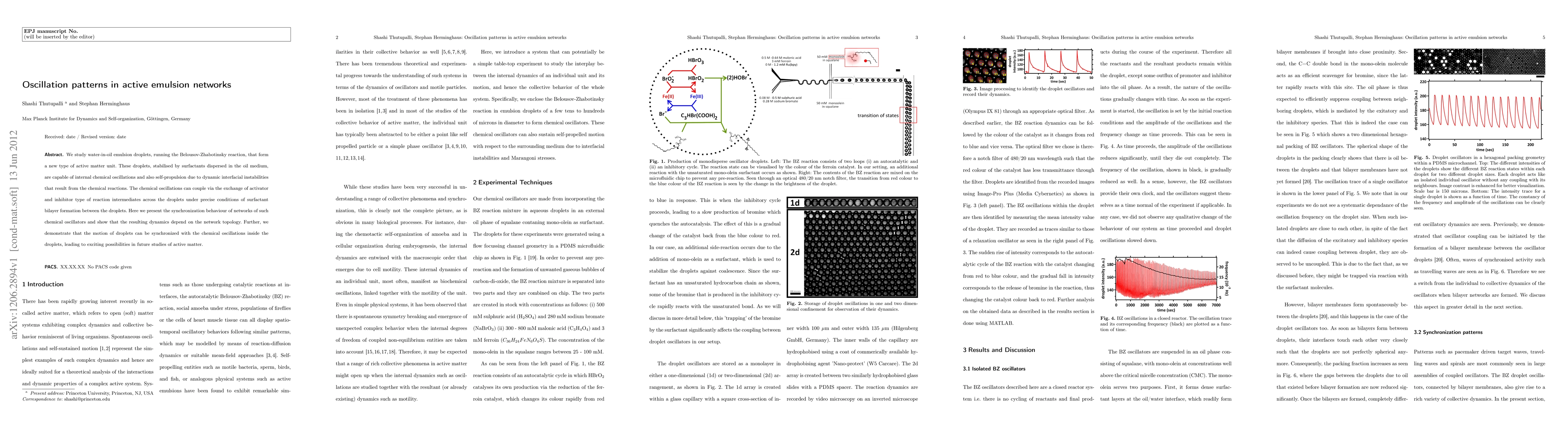 Researchers create water-in-oil emulsion droplets that can exhibit internal chemical oscillations and self-propulsion, leading to synchronized motion in networks with varying topologies.
