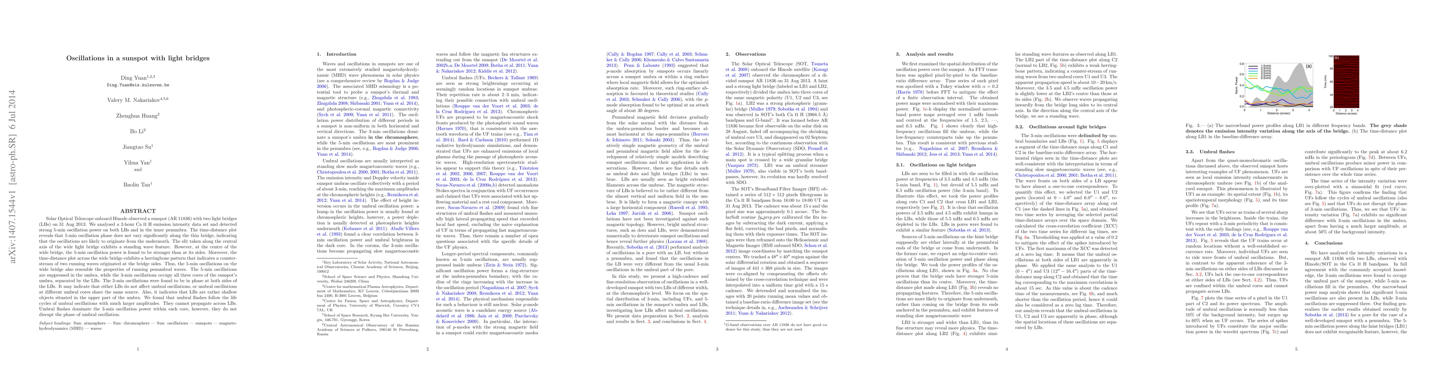 Researchers observed strong 5-minute oscillations in a sunspot with light bridges, suggesting that these oscillations originate from beneath the bridge. The study reveals complex patterns of wave propagation and interaction between different parts of the sunspot.