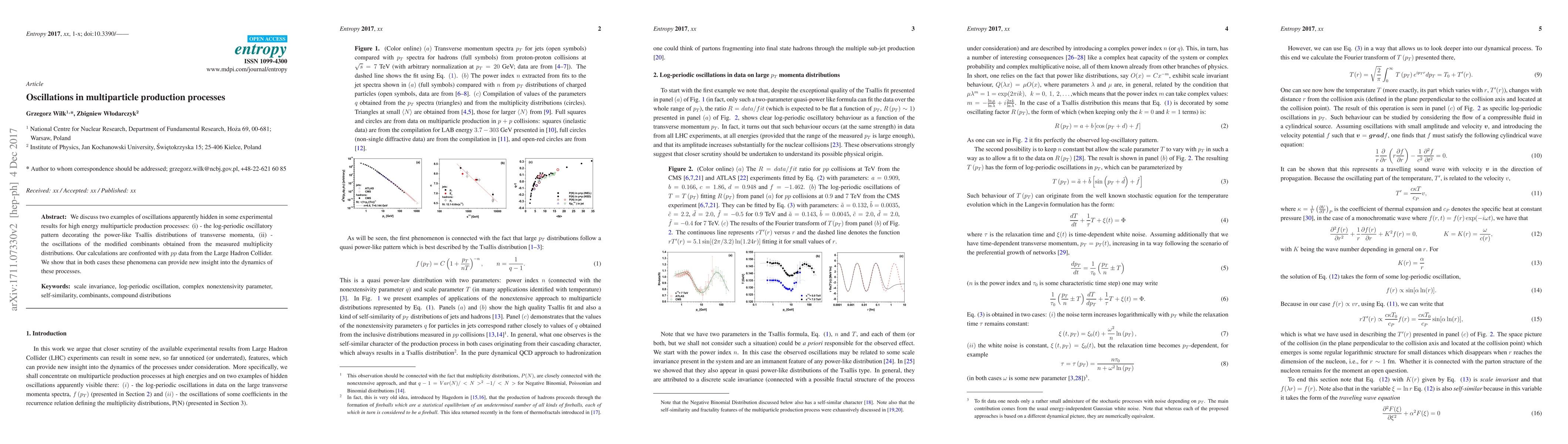 We discuss two examples of oscillations apparently hidden in some experimental results for high energy multiparticle production processes: (i) - the log-periodic oscillatory pattern decorating the power-like Tsallis distributions of transverse momenta, (ii) - the oscillations of the modified combinants obtained from the measured multiplicity distributions. We show that in both cases these phenomena can provide new insight into the dynamics of these processes.