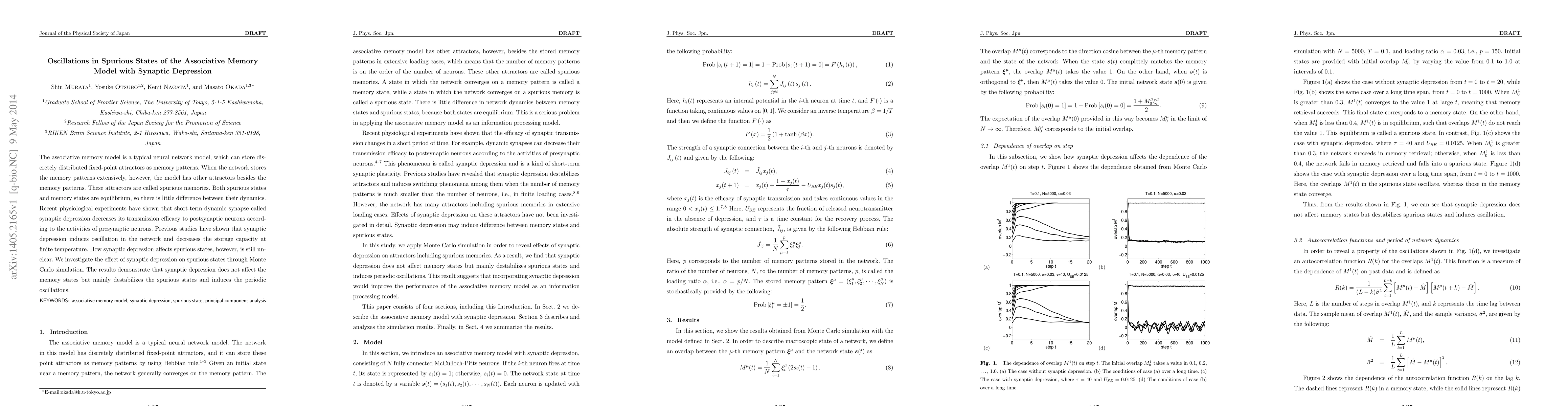 This paper investigates how synaptic depression affects spurious states in an associative memory model, finding that while it does not impact memory states, it destabilizes spurious states and induces periodic oscillations through Monte Carlo simulations.