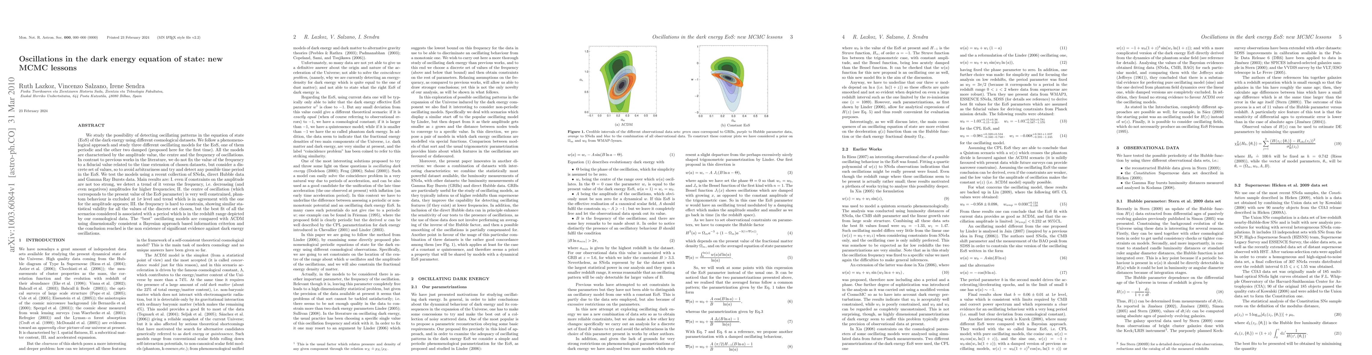 We study the possibility of detecting oscillating patterns in the equation of state (EoS) of the dark energy using different cosmological datasets. We follow a phenomenological approach and study three different oscillating models for the EoS, one of them periodic and the other two damped (proposed here for the first time). All the models are characterised by the amplitude value, the centre and the frequency of oscillations. In contrast to previous works in the literature, we do not fix the value of the frequency to a fiducial value related to the time extension of chosen datasets, but consider a discrete set of values, so to avoid arbitrariness and try and detect any possible time period in the EoS. We test the models using a recent collection of SNeIa, direct Hubble data and Gamma Ray Bursts data. Main results are: I. even if constraints on the amplitude are not too strong, we detect a trend of it versus the frequency, i.e. decreasing (and even negatives) amplitudes for higher frequencies; II. the centre of oscillation (which corresponds to the present value of the EoS parameter) is very well constrained, phantom behaviour is excluded at $1\sigma$ level and trend which is in agreement with the one for the amplitude appears; III. the frequency is hard to constrain, showing similar statistical validity for all the values of the discrete set chosen, but the best fit of all the scenarios considered is associated with a period which is in the redshift range depicted by our cosmological data. The "best" oscillating models are compared with $\Lambda$CDM using dimensionally consistent a Bayesian approach based information criterion and the conclusion reached is the non existence of significant evidence against dark energy oscillations.