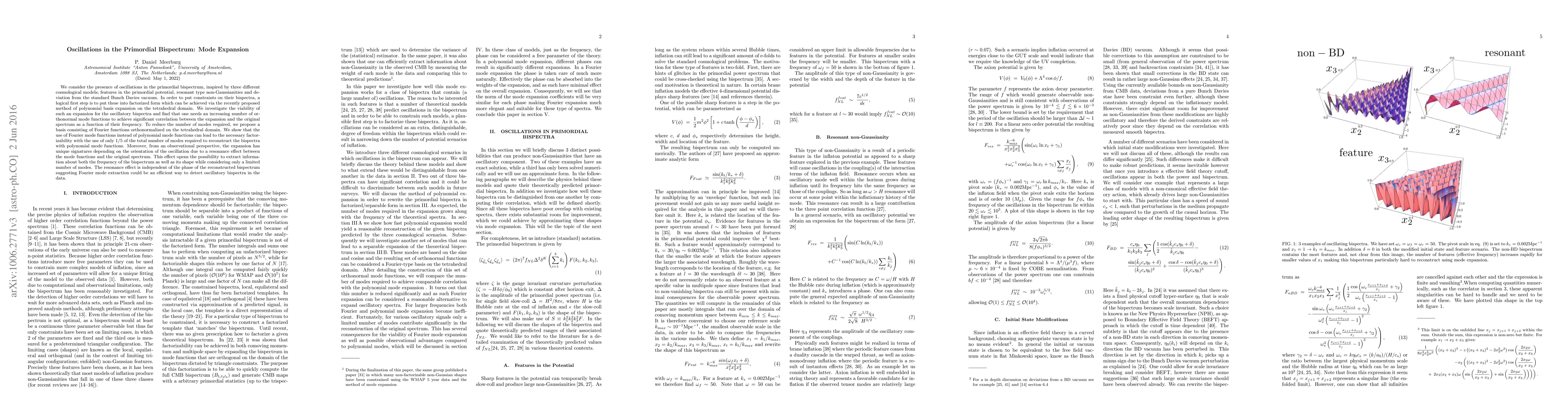 We consider the presence of oscillations in the primordial bispectrum, inspired by three different cosmological models; features in the primordial potential, resonant type non-Gaussianities and deviation from the standard Bunch Davies vacuum. In order to put constraints on their bispectra, a logical first step is to put these into factorized form which can be achieved via the recently proposed method of polynomial basis expansion on the tetrahedral domain. We investigate the viability of such an expansion for the oscillatory bispectra and find that one needs an increasing number of orthonormal mode functions to achieve significant correlation between the expansion and the original spectrum as a function of their frequency. To reduce the number of modes required, we propose a basis consisting of Fourier functions orthonormalized on the tetrahedral domain. We show that the use of Fourier mode functions instead of polynomial mode functions can lead to the necessary factorizability with the use of only 1/5 of the total number of modes required to reconstruct the bispectra with polynomial mode functions. Moreover, from an observational perspective, the expansion has unique signatures depending on the orientation of the oscillation due to a resonance effect between the mode functions and the original spectrum. This effect opens the possibility to extract informa- tion about both the frequency of the bispectrum as well as its shape while considering only a limited number of modes. The resonance effect is independent of the phase of the reconstructed bispectrum suggesting Fourier mode extraction could be an efficient way to detect oscillatory bispectra in the data.