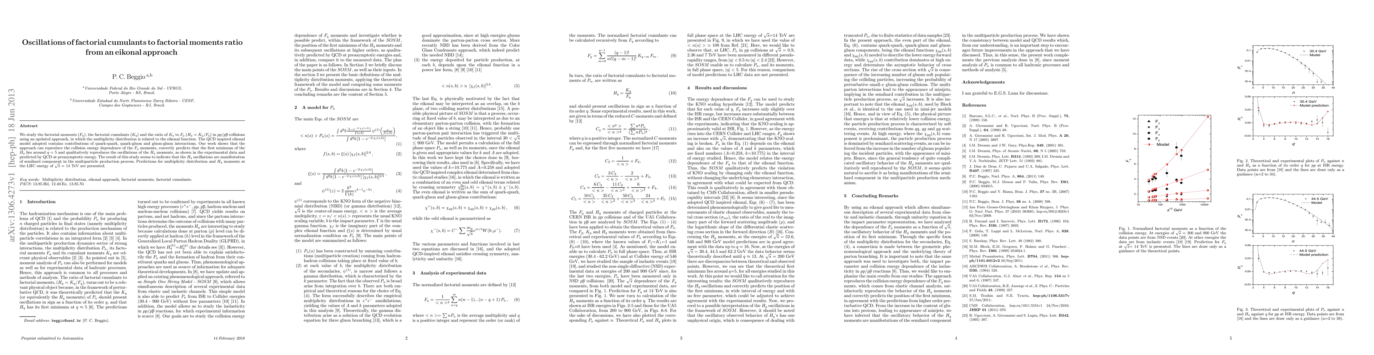 This paper investigates the ratio of factorial cumulants to factorial moments (Hq) in proton-proton collisions using an eikonal model inspired by QCD, showing that it can reproduce experimental data and predict the oscillations observed in the Hq moments, suggesting these oscillations reflect the semihard component in multiparticle production. Predictions for Hq moments at 14 TeV LHC energy are also provided.