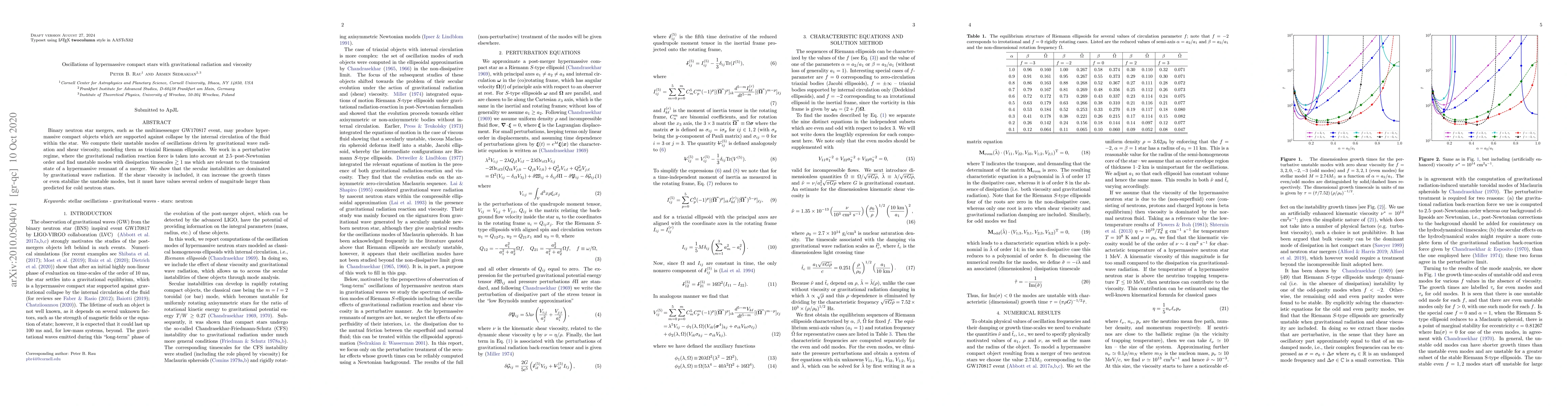 This paper investigates the oscillations of hypermassive compact stars formed from binary neutron star mergers, focusing on unstable modes driven by gravitational radiation and shear viscosity. It finds that gravitational wave radiation dominates secular instabilities, while shear viscosity can stabilize modes if present at significantly higher values than typical cold neutron stars.