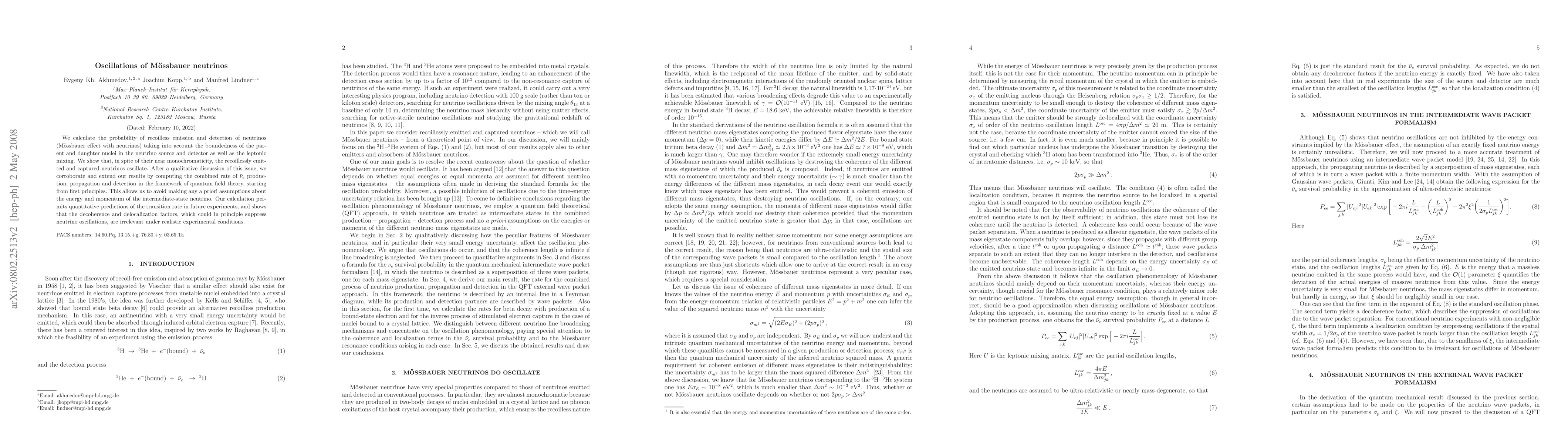 This paper investigates the oscillation behavior of recoillessly emitted neutrinos, termed "Mossbauer neutrinos," considering nuclear boundedness and leptonic mixing. The study demonstrates that despite their near monochromaticity, these neutrinos oscillate, and provides a quantum field theory framework to predict their transition rates, showing that decoherence factors do not suppress oscillations under realistic conditions.