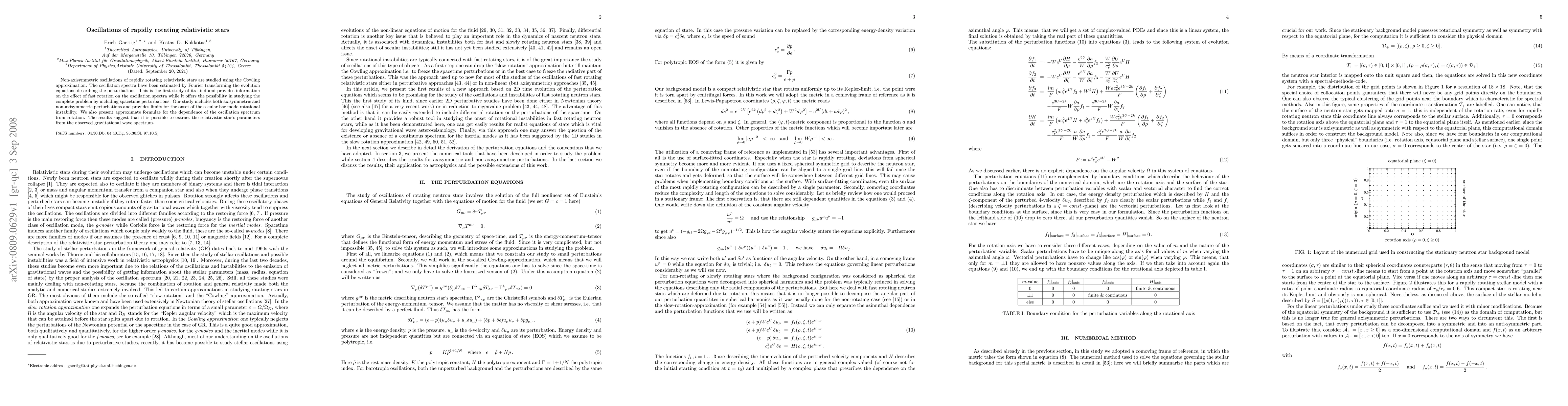 The study investigates oscillations of rapidly rotating relativistic stars using the Cowling approximation with a 2D version of perturbation equations, including both axisymmetric and non-axisymmetric perturbations.