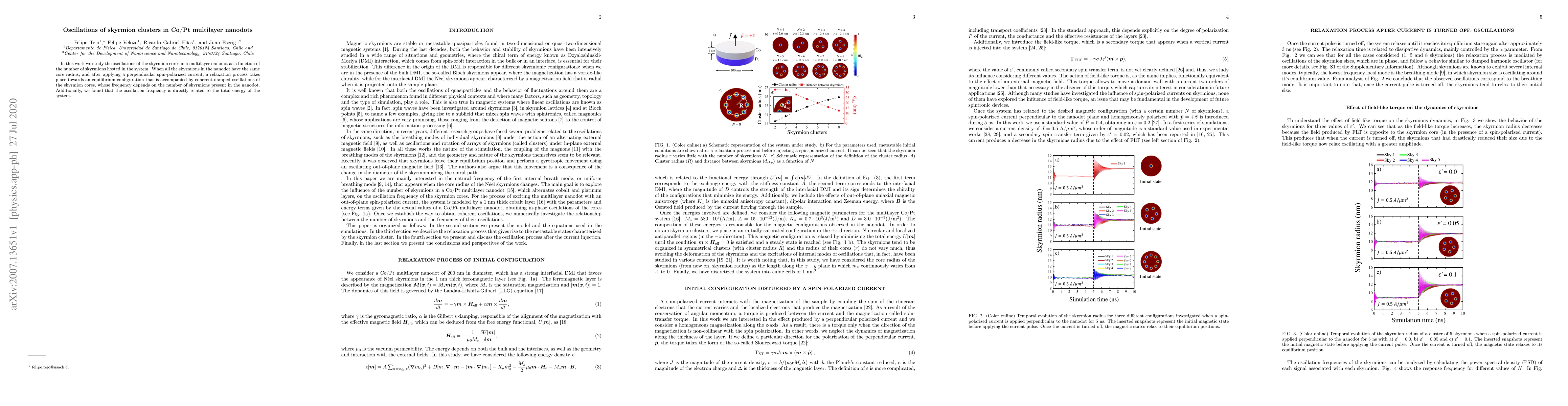 Researchers studied oscillations of skyrmion clusters in a multilayer nanodot, finding that their frequency depends on the number of skyrmions present, with higher frequencies corresponding to more energy.