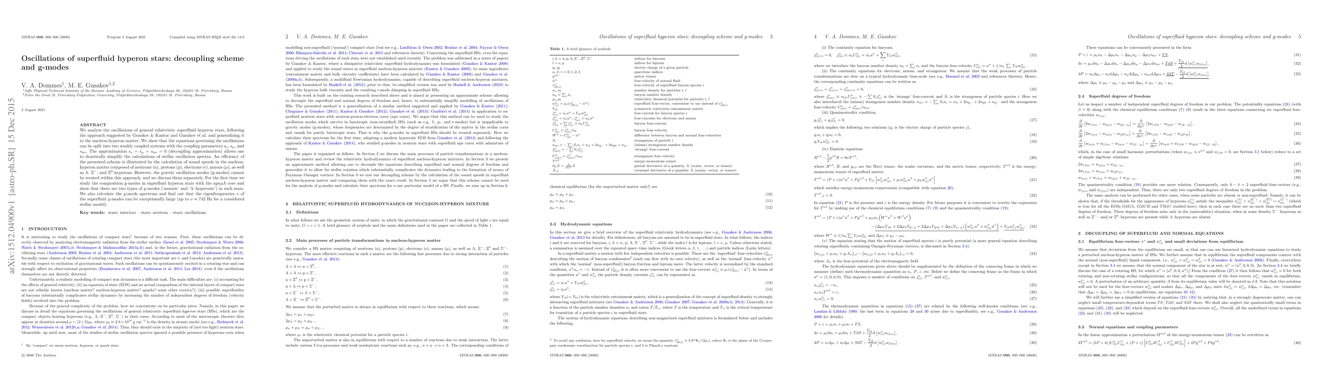 This paper explores the oscillations of superfluid hyperon stars using a decoupling scheme to simplify calculations, revealing two weakly coupled systems. It introduces a novel study of gravity oscillation modes (g-modes) in these stars, identifying two types (`muonic' and `$\Lambda$-hyperonic') and finding exceptionally high eigenfrequencies for superfluid g-modes, up to 742 Hz.