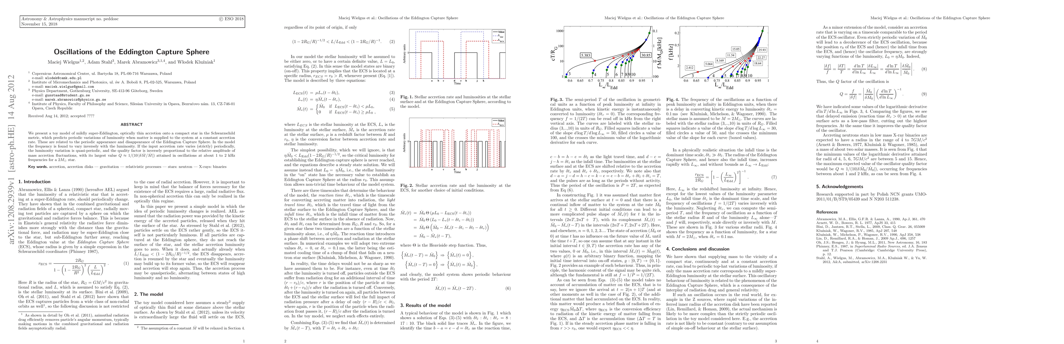 We present a toy model of mildly super-Eddington, optically thin accretion onto a compact star in the Schwarzschild metric, which predicts periodic variations of luminosity when matter is supplied to the system at a constant accretion rate. These are related to the periodic appearance and disappearance of the Eddington Capture Sphere. In the model the frequency is found to vary inversely with the luminosity. If the input accretion rate varies (strictly) periodically, the luminosity variation is quasi-periodic, and the quality factor is inversely proportional to the relative amplitude of mass accretion fluctuations, with its largest value approximately Q= 1/(10 |delta Mdot/Mdot|) attained in oscillations at about 1 to 2 kHz frequencies for a 2 solar mass star.