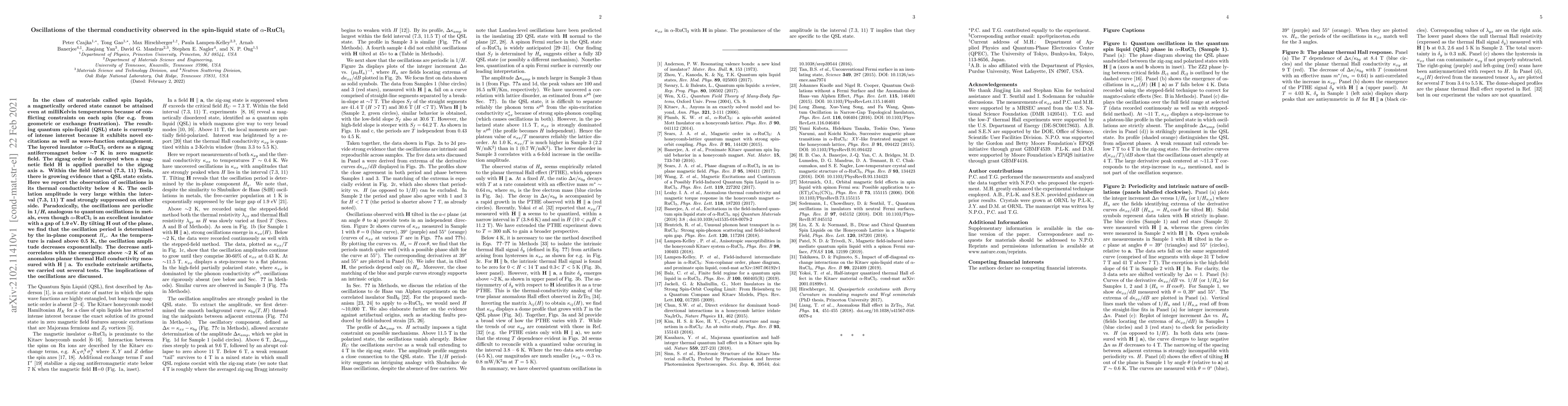 In the class of materials called spin liquids, a magnetically ordered state cannot be attained even at milliKelvin temperatures because of conflicting constraints on each spin (for e.g. from geometric or exchange frustration). The resulting quantum spin-liquid (QSL) state is currently of intense interest because it exhibits novel excitations as well as wave-function entanglement. The layered insulator $\alpha$-RuCl$_3$ orders as a zigzag antiferromagnet below $\sim$7 K in zero magnetic field. The zigzag order is destroyed when a magnetic field $\bf H$ is applied parallel to the zigzag axis a. Within the field interval (7.3, 11) Tesla, there is growing evidence that a QSL state exists. Here we report the observation of oscillations in its thermal conductivity below 4 K. The oscillation amplitude is very large within the interval (7.3, 11) T and strongly suppressed on either side. Paradoxically, the oscillations are periodic in 1/\emph{H}, analogous to quantum oscillations in metals, even though $\alpha$-RuCl$_3$ is an excellent insulator with a gap of 1.9 eV. By tilting $\bf H$ out of the plane, we find that the oscillation period is determined by the in-plane component $H_a$. As the temperature is raised above 0.5 K, the oscillation amplitude decreases exponentially. The decrease anticorrelates with the emergence above $\sim$2 K of an anomalous planar thermal Hall conductivity measured with $\bf H\parallel a$. To exclude extrinsic artifacts, we carried out several tests. The implications of the oscillations are discussed.