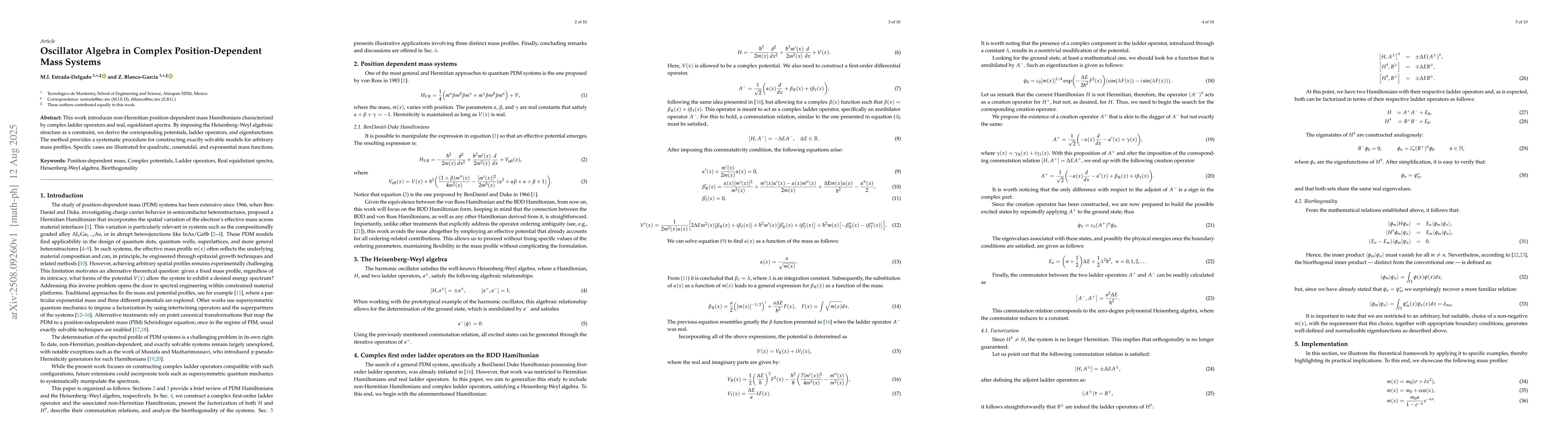 This work introduces non-Hermitian position-dependent mass Hamiltonians characterized by complex ladder operators and real, equidistant spectra. By imposing the Heisenberg-Weyl algebraic structure as a constraint, we derive the corresponding potentials, ladder operators, and eigenfunctions. The method provides a systematic procedure for constructing exactly solvable models for arbitrary mass profiles. Specific cases are illustrated for quadratic, cosenoidal, and exponential mass functions.