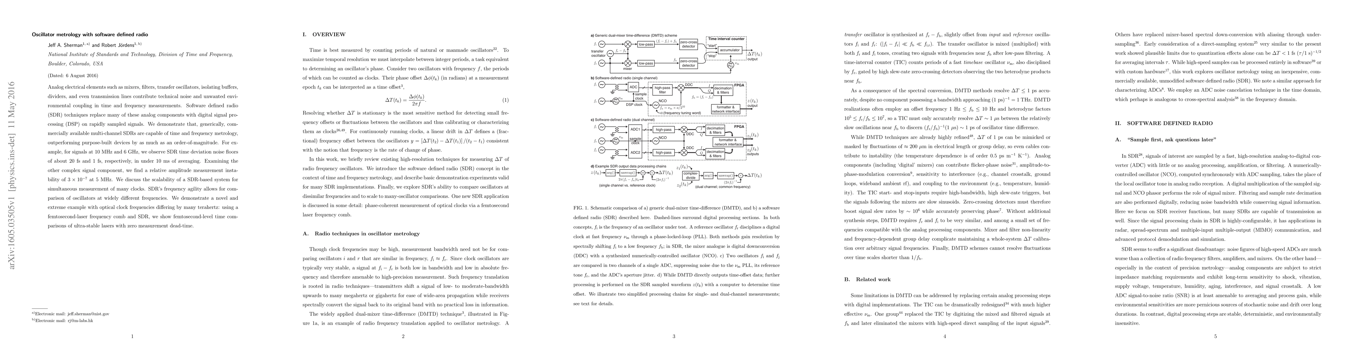 The paper presents a novel approach to time and frequency metrology using software-defined radio, demonstrating improved performance over traditional hardware-based systems through digital signal processing and removal of technical noise from analog components.