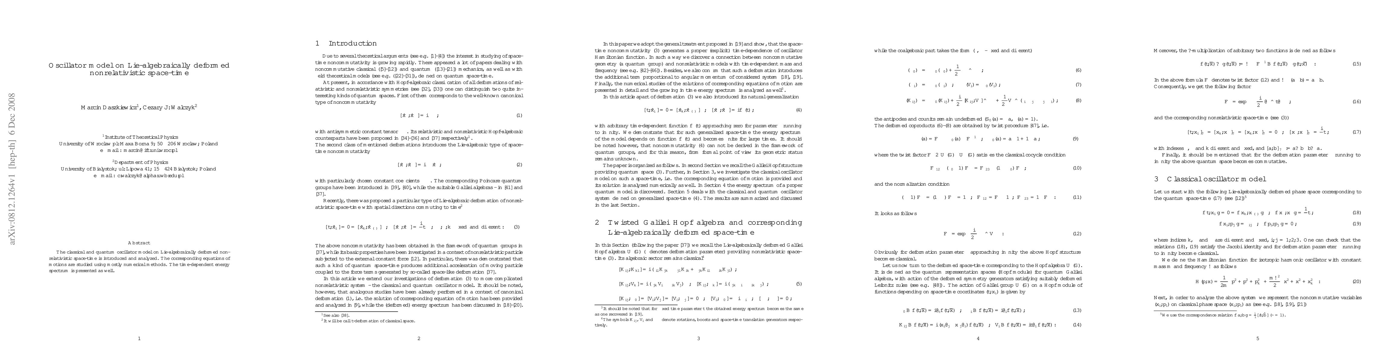 This paper introduces and analyzes a classical and quantum oscillator model on Lie-algebraically deformed nonrelativistic space-time, employing numerical methods to study the equations of motion and presenting the time-dependent energy spectrum.