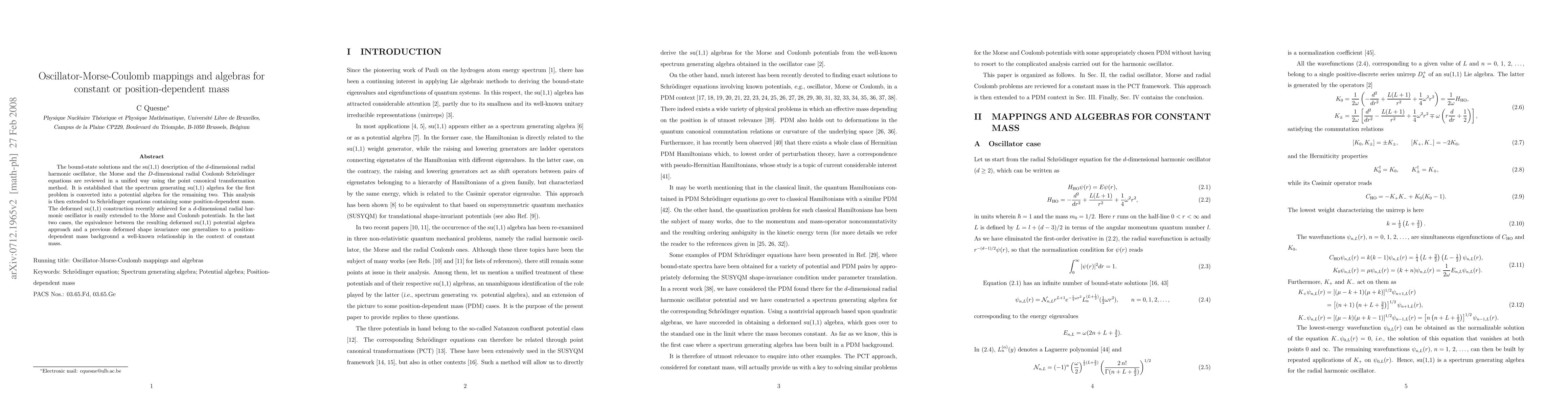 This paper reviews the unified treatment of the radial harmonic oscillator, Morse, and Coulomb Schrödinger equations using su(1,1) algebras, establishing a potential algebra for the latter two. It extends these findings to Schrödinger equations with position-dependent mass, demonstrating the equivalence between deformed su(1,1) and shape invariance approaches.