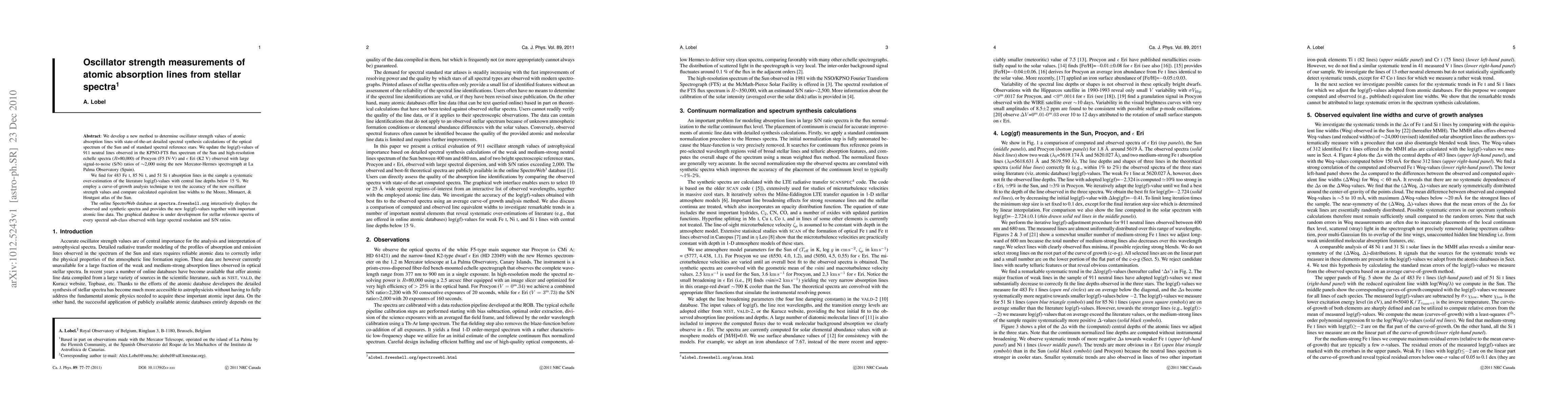 This paper introduces a novel method for determining oscillator strength values of atomic absorption lines using advanced spectral synthesis, updating log(gf)-values for 911 neutral lines in the Sun and two stars. It reveals a systematic over-estimation in previous literature values for certain lines and provides new data accessible via the SpectroWeb database.