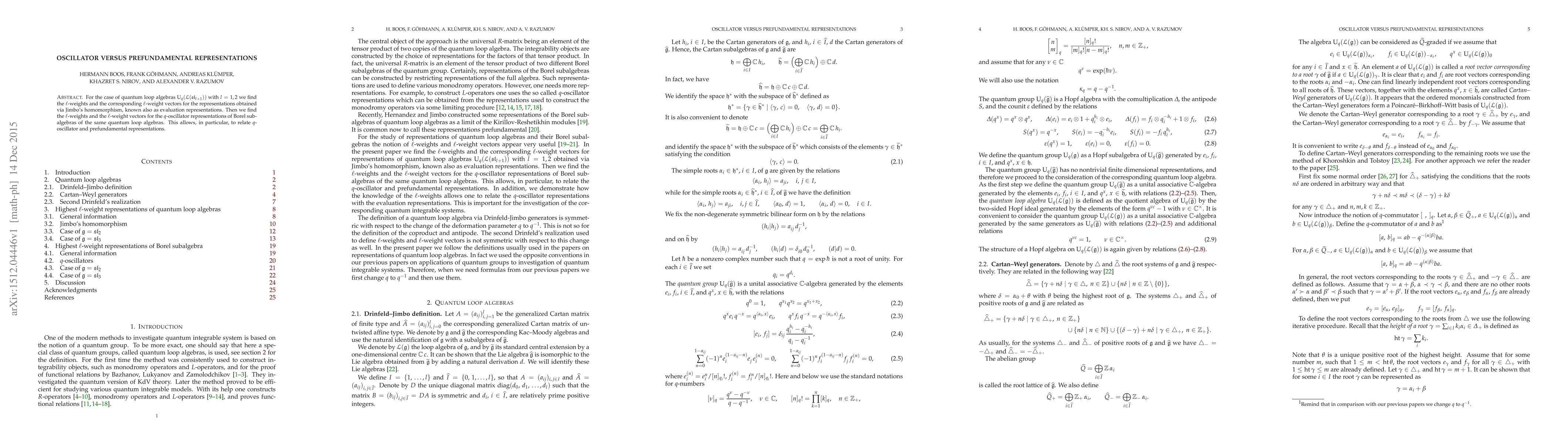 For the case of quantum loop algebras $\mathrm U_q(\mathcal L(\mathfrak{sl}_{l + 1}))$ with $l = 1, 2$ we find the $\ell$-weights and the corresponding $\ell$-weight vectors for the representations obtained via Jimbo's homomorphism, known also as evaluation representations. Then we find the $\ell$-weights and the $\ell$-weight vectors for the $q$-oscillator representations of Borel subalgebras of the same quantum loop algebras. This allows, in particular, to relate $q$-oscillator and prefundamental representations.
