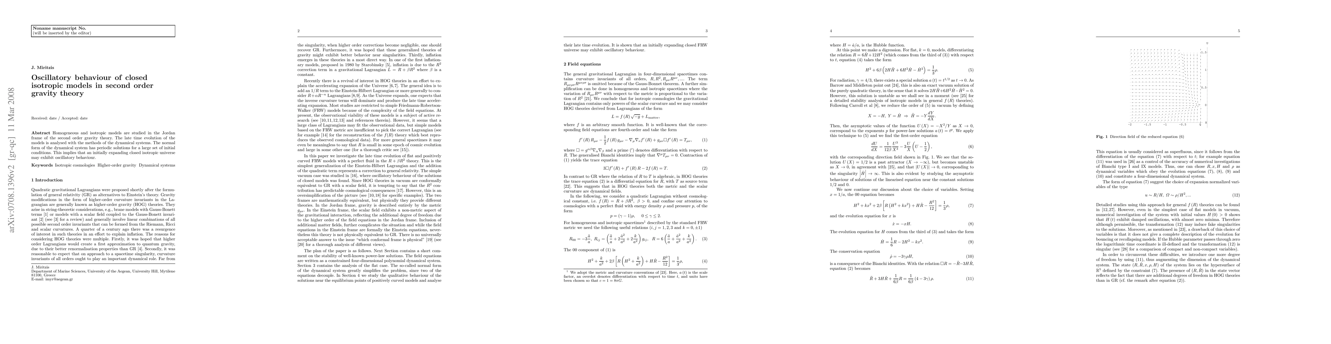 Researchers found that closed isotropic models in second-order gravity theory can exhibit oscillatory behavior at late times, with periodic solutions for many initial conditions.