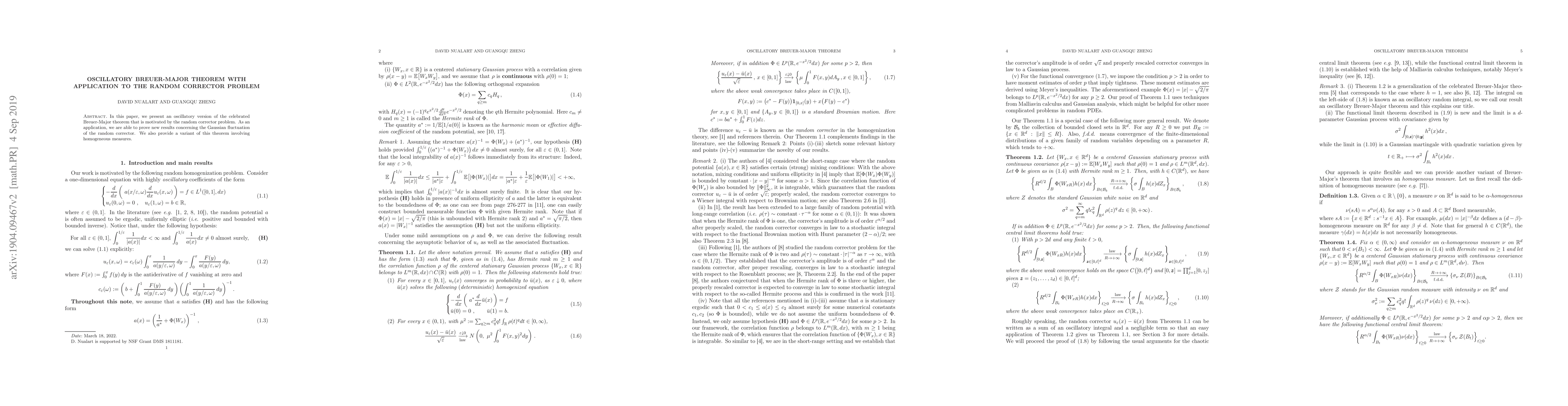 In this paper, we present an oscillatory version of the celebrated Breuer-Major theorem that is motivated by the random corrector problem. As an application, we are able to prove new results concerning the Gaussian fluctuation of the random corrector. We also provide a variant of this theorem involving homogeneous measures.