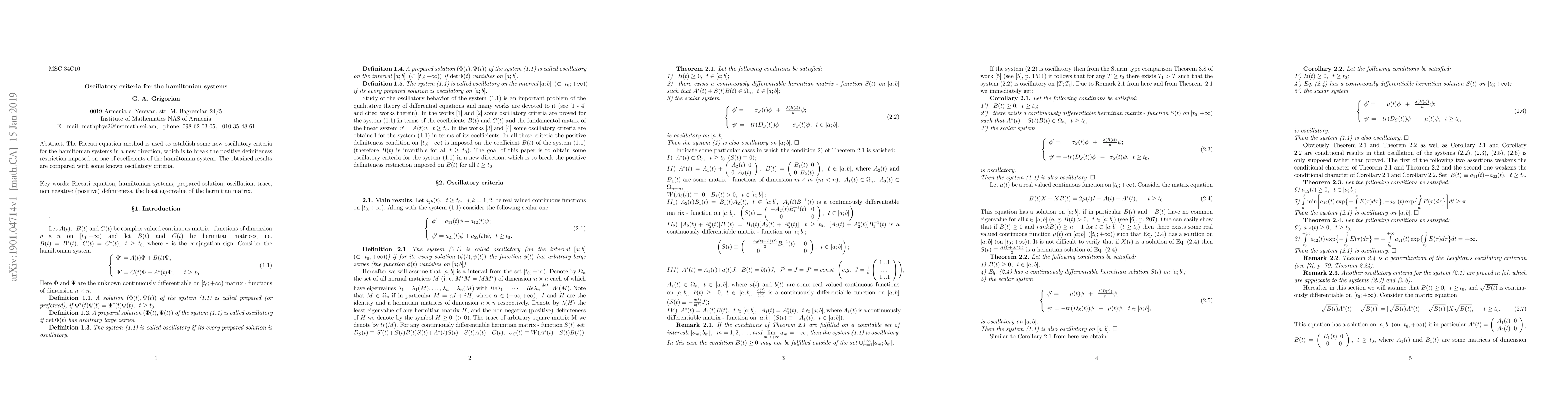 Researchers developed new oscillatory criteria for Hamiltonian systems without the positive definiteness restriction, expanding on existing methods.