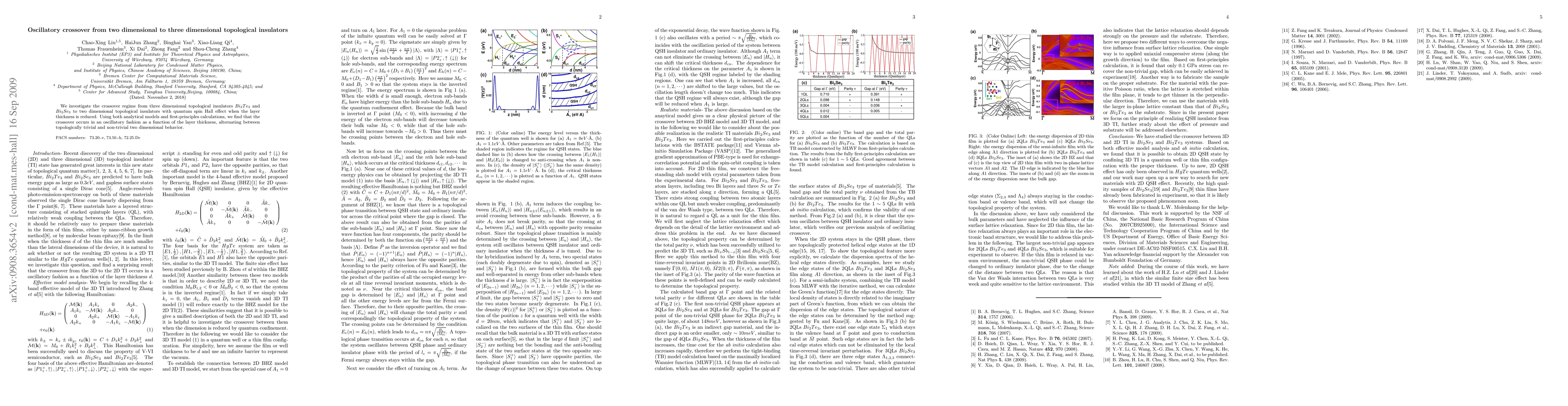 This study explores the transition from 3D topological insulators $Bi_2Te_3$ and $Bi_2Se_3$ to 2D quantum spin Hall insulators as layer thickness decreases. The research reveals an oscillatory pattern in the crossover, alternating between topologically trivial and non-trivial 2D behaviors.