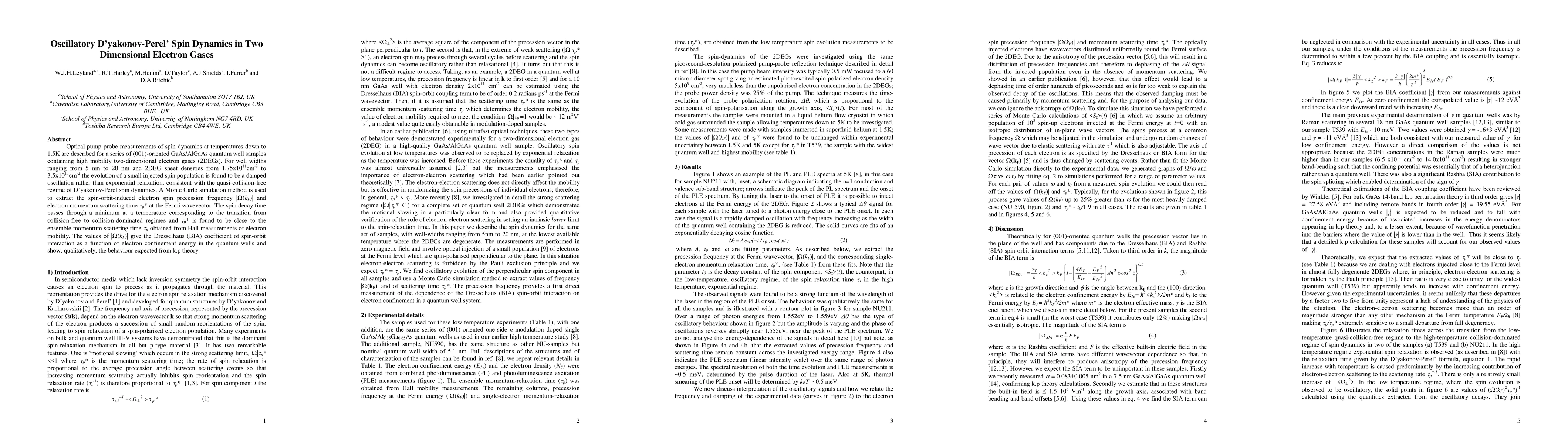 This paper investigates oscillatory D'yakonov-Perel spin dynamics in high mobility 2DEGs using optical pump-probe measurements, revealing damped oscillations instead of exponential relaxation. Monte Carlo simulations extract spin precession frequency and scattering times, showing a transition from collision-free to collision-dominated regimes.
