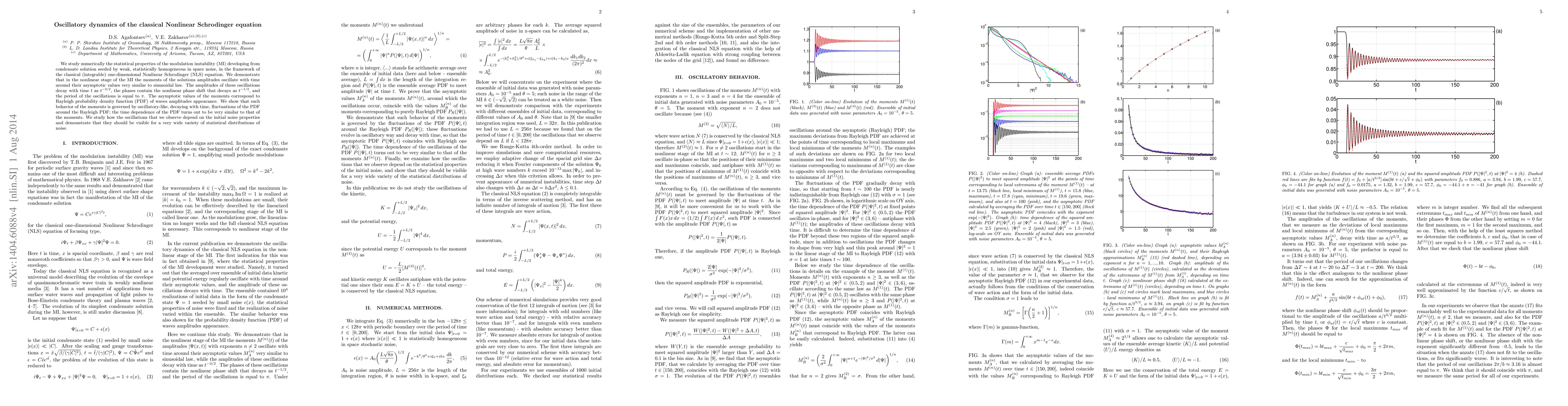 The paper investigates the statistical properties of modulation instability in the classical Nonlinear Schrodinger equation, finding that solution amplitudes oscillate with time around asymptotic values similar to a sinusoidal law.
