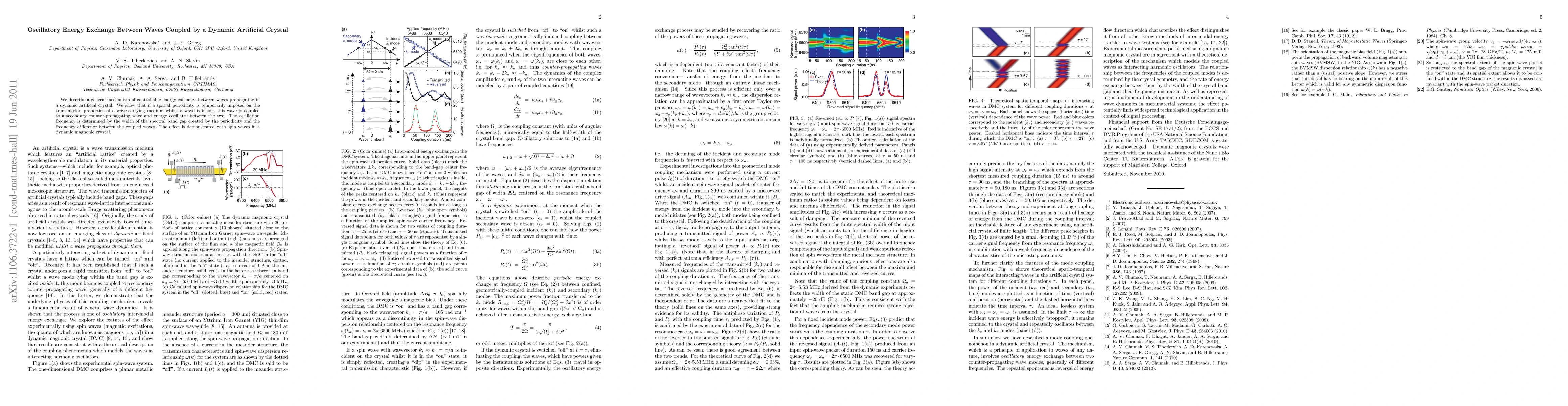 We describe a general mechanism of controllable energy exchange between waves propagating in a dynamic artificial crystal. We show that if a spatial periodicity is temporarily imposed on the transmission properties of a wave-carrying medium whilst a wave is inside, this wave is coupled to a secondary counter-propagating wave and energy oscillates between the two. The oscillation frequency is determined by the width of the spectral band gap created by the periodicity and the frequency difference between the coupled waves. The effect is demonstrated with spin waves in a dynamic magnonic crystal.