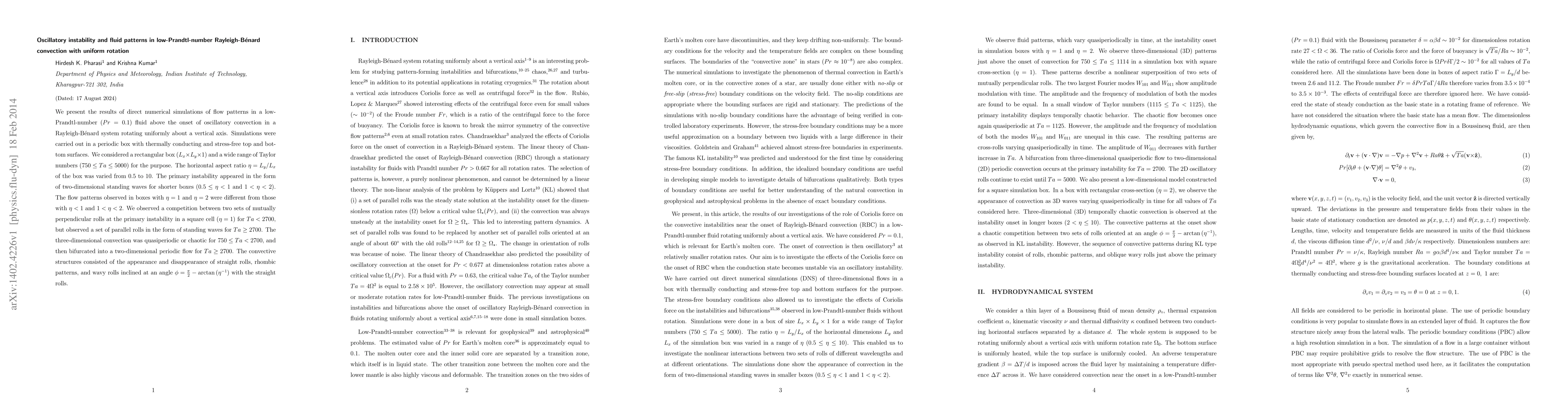 We present the results of direct numerical simulations of flow patterns in a low-Prandtl-number ($Pr = 0.1$) fluid above the onset of oscillatory convection in a Rayleigh-B\'{e}nard system rotating uniformly about a vertical axis. Simulations were carried out in a periodic box with thermally conducting and stress-free top and bottom surfaces. We considered a rectangular box ($L_x \times L_y \times 1$) and a wide range of Taylor numbers ($750 \le Ta \le 5000$) for the purpose. The horizontal aspect ratio $\eta = L_y/L_x$ of the box was varied from $0.5$ to $10$. The primary instability appeared in the form of two-dimensional standing waves for shorter boxes ($0.5 \le \eta < 1$ and $1 < \eta < 2$). The flow patterns observed in boxes with $\eta = 1$ and $\eta = 2$ were different from those with $\eta < 1$ and $1 < \eta < 2$. We observed a competition between two sets of mutually perpendicular rolls at the primary instability in a square cell ($\eta = 1$) for $Ta < 2700$, but observed a set of parallel rolls in the form of standing waves for $Ta \geq 2700$. The three-dimensional convection was quasiperiodic or chaotic for $750 \le Ta < 2700$, and then bifurcated into a two-dimensional periodic flow for $Ta \ge 2700$. The convective structures consisted of the appearance and disappearance of straight rolls, rhombic patterns, and wavy rolls inclined at an angle $\phi = \frac{\pi}{2} - \arctan{(\eta^{-1})}$ with the straight rolls.