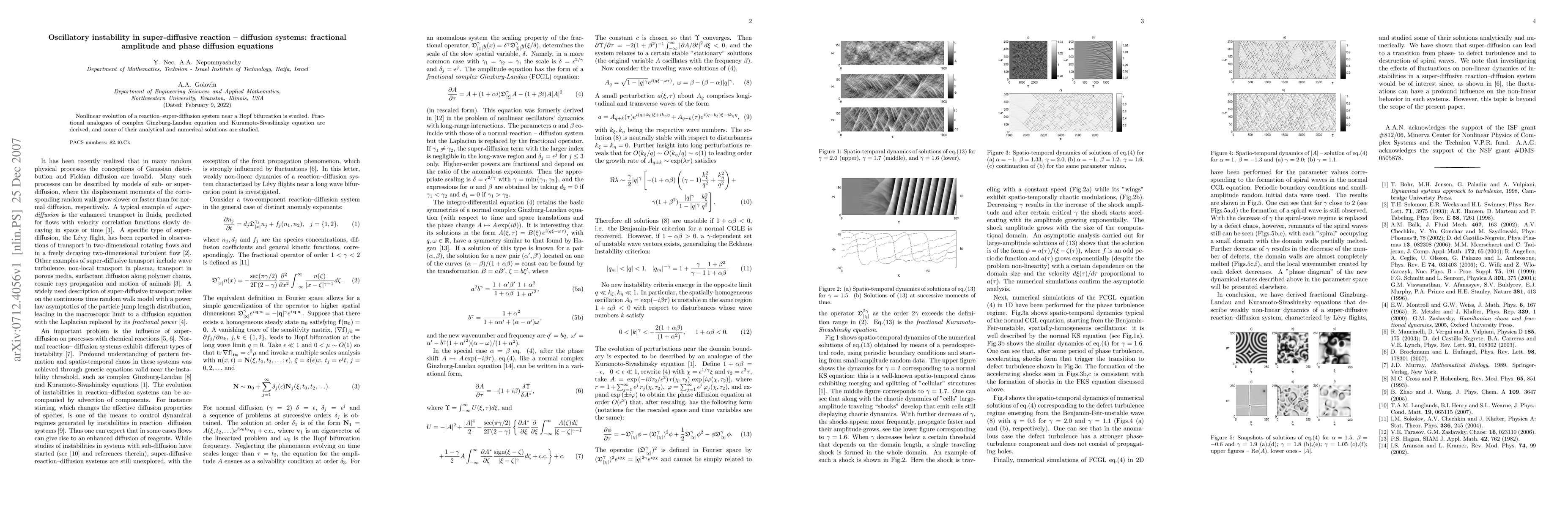 Researchers studied the nonlinear evolution of a reaction-super-diffusion system near a Hopf bifurcation, deriving fractional analogues of complex equations and analyzing their solutions.