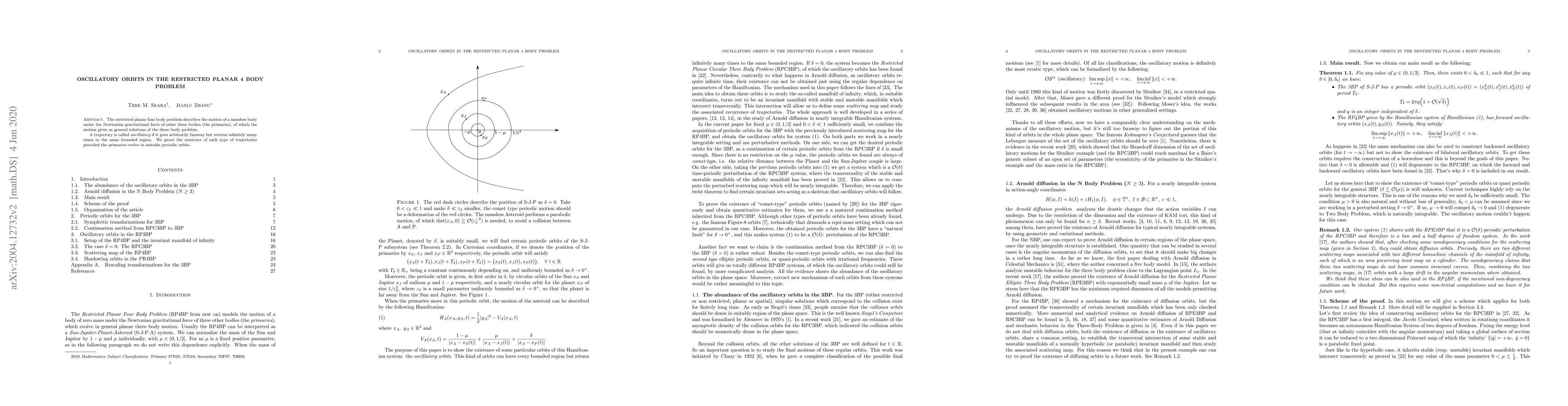 This paper proves the existence of oscillatory orbits in the restricted planar four body problem, where a massless body returns infinitely often to a bounded region despite moving arbitrarily far away, under the condition that the primaries follow specific periodic orbits.