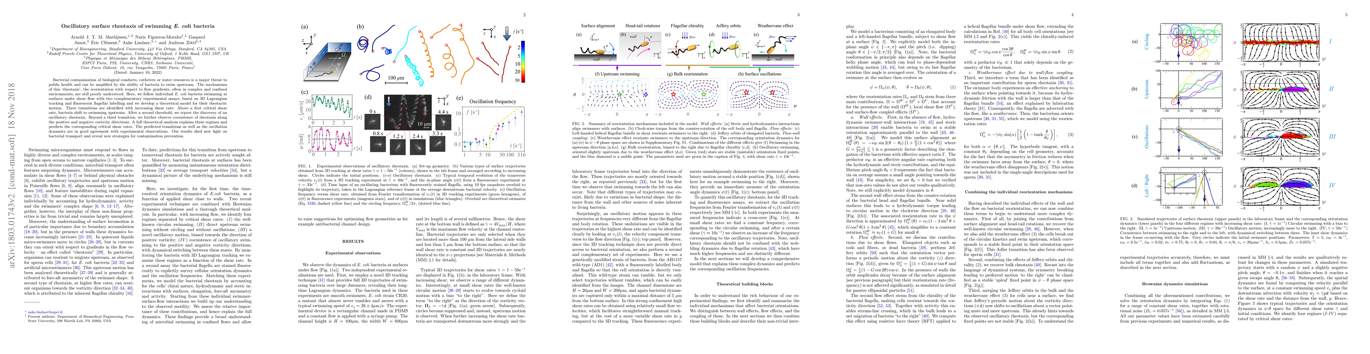 Bacterial contamination of biological conducts, catheters or water resources is a major threat to public health and can be amplified by the ability of bacteria to swim upstream. The mechanisms of this rheotaxis, the reorientation with respect to flow gradients, often in complex and confined environments, are still poorly understood. Here, we follow individual E. coli bacteria swimming at surfaces under shear flow with two complementary experimental assays, based on 3D Lagrangian tracking and fluorescent flagellar labelling and we develop a theoretical model for their rheotactic motion. Three transitions are identified with increasing shear rate: Above a first critical shear rate, bacteria shift to swimming upstream. After a second threshold, we report the discovery of an oscillatory rheotaxis. Beyond a third transition, we further observe coexistence of rheotaxis along the positive and negative vorticity directions. A full theoretical analysis explains these regimes and predicts the corresponding critical shear rates. The predicted transitions as well as the oscillation dynamics are in good agreement with experimental observations. Our results shed new light on bacterial transport and reveal new strategies for contamination prevention.