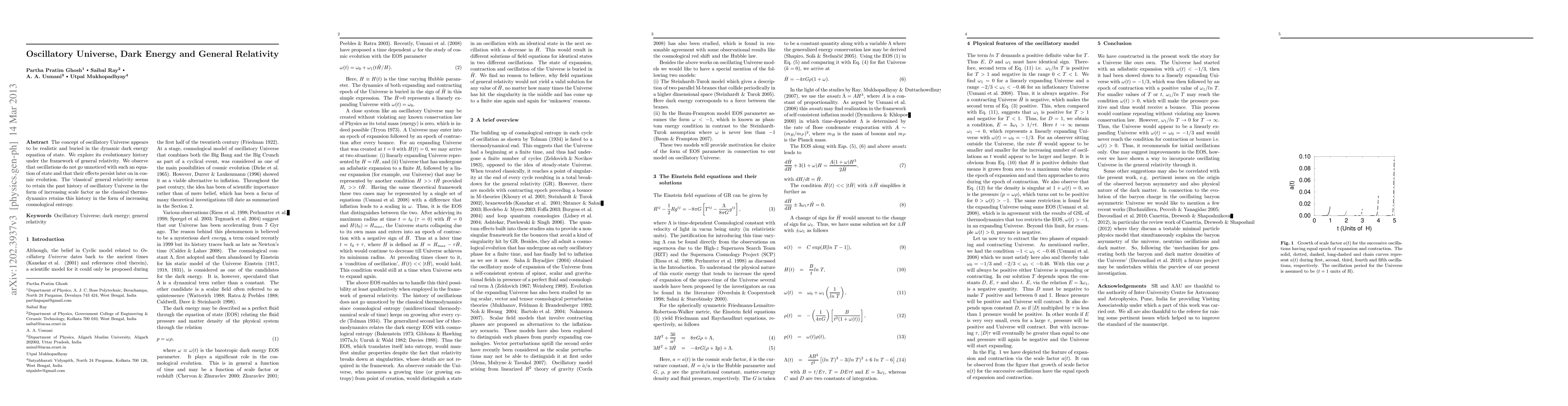 The concept of oscillatory Universe appears to be realistic and buried in the dynamic dark energy equation of state. We explore its evolutionary history under the frame work of general relativity. We observe that oscillations do not go unnoticed with such an equation of state and that their effects persist later on in cosmic evolution. The `classical' general relativity seems to retain the past history of oscillatory Universe in the form of increasing scale factor as the classical thermodynamics retains this history in the form of increasing cosmological entropy.