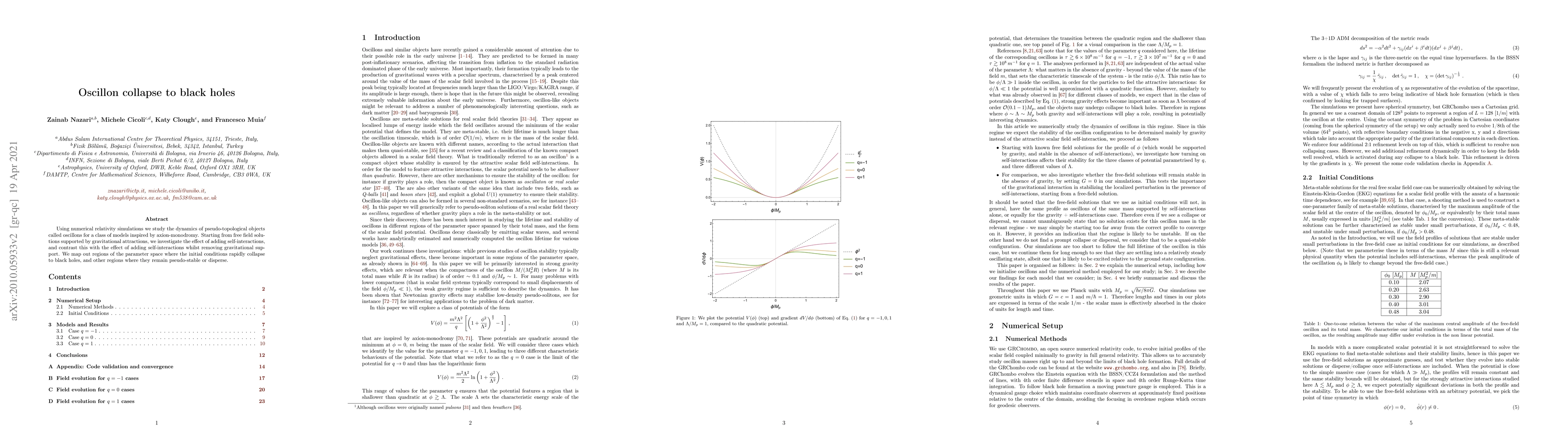 Using numerical relativity simulations we study the dynamics of pseudo-topological objects called oscillons for a class of models inspired by axion-monodromy. Starting from free field solutions supported by gravitational attractions, we investigate the effect of adding self-interactions, and contrast this with the effect of adding self-interactions whilst removing gravitational support. We map out regions of the parameter space where the initial conditions rapidly collapse to black holes, and other regions where they remain pseudo-stable or disperse.