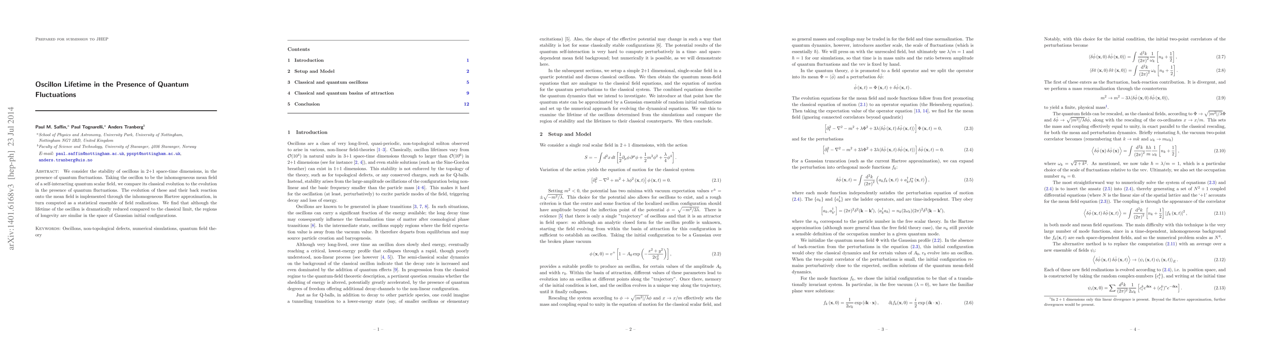 The study uses the inhomogeneous Hartree approximation to simulate oscillons, considering quantum fluctuations. It compares classical evolution to the evolution with quantum fluctuations, implementing their back-reaction through statistical ensembles of field realizations.