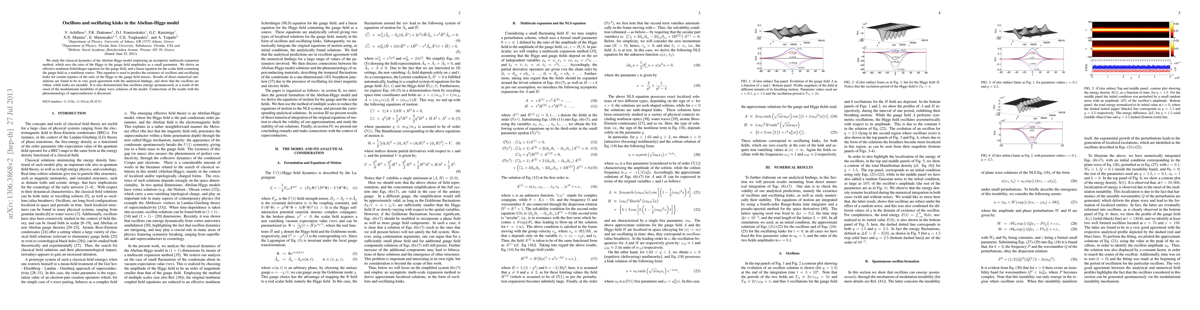 This paper investigates the classical dynamics of the Abelian Higgs model using an asymptotic multiscale expansion method, predicting the existence of oscillons and oscillating kinks. Numerical simulations confirm the robustness of oscillons and the instability of kinks, with oscillons emerging from modulational instability.