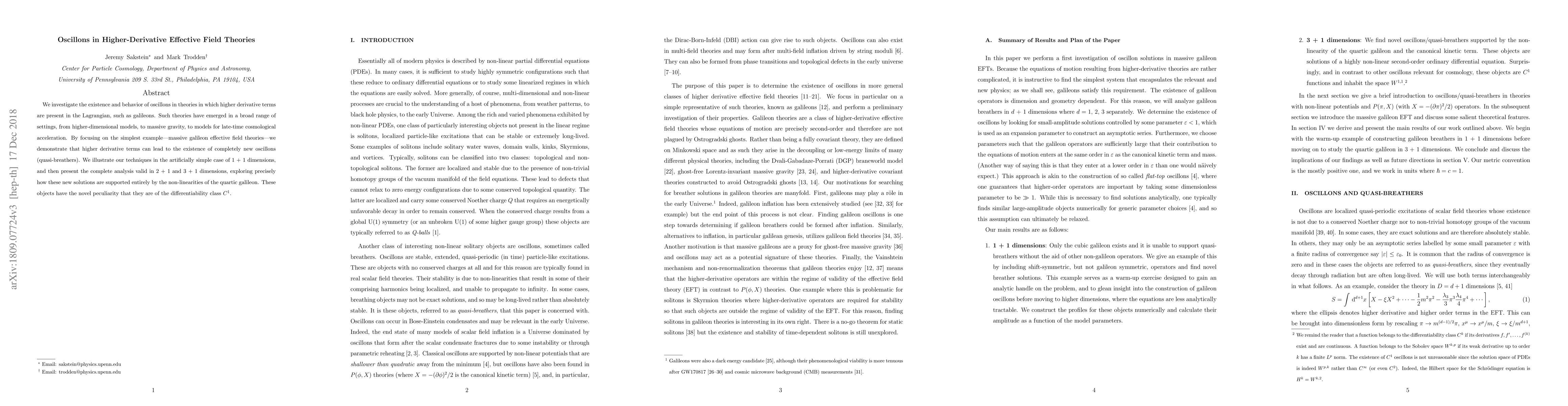 This paper explores the emergence of oscillons in higher-derivative effective field theories, specifically massive galileon models, demonstrating that these theories can support new quasi-breathers. The study reveals how non-linearities in quartic galileon terms sustain these $C^1$ differentiable oscillons across 1+1, 2+1, and 3+1 dimensions.