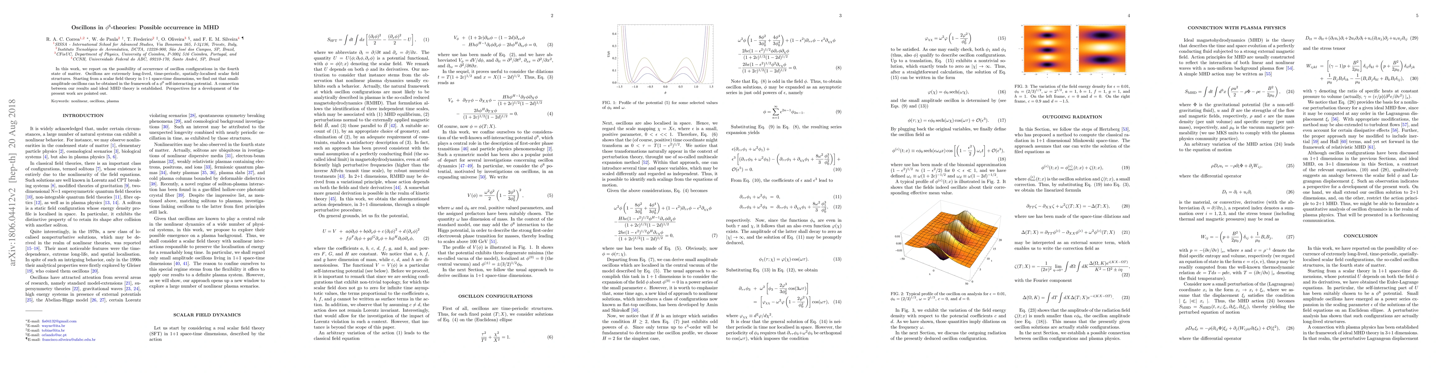This paper explores the potential emergence of oscillons, long-lived, time-periodic scalar field structures, in the context of $\phi^6$ self-interacting potentials and connects these findings to ideal magnetohydrodynamics (MHD) theory. The study suggests that small-amplitude oscillons may exist in the fourth state of matter, offering new perspectives for further research.