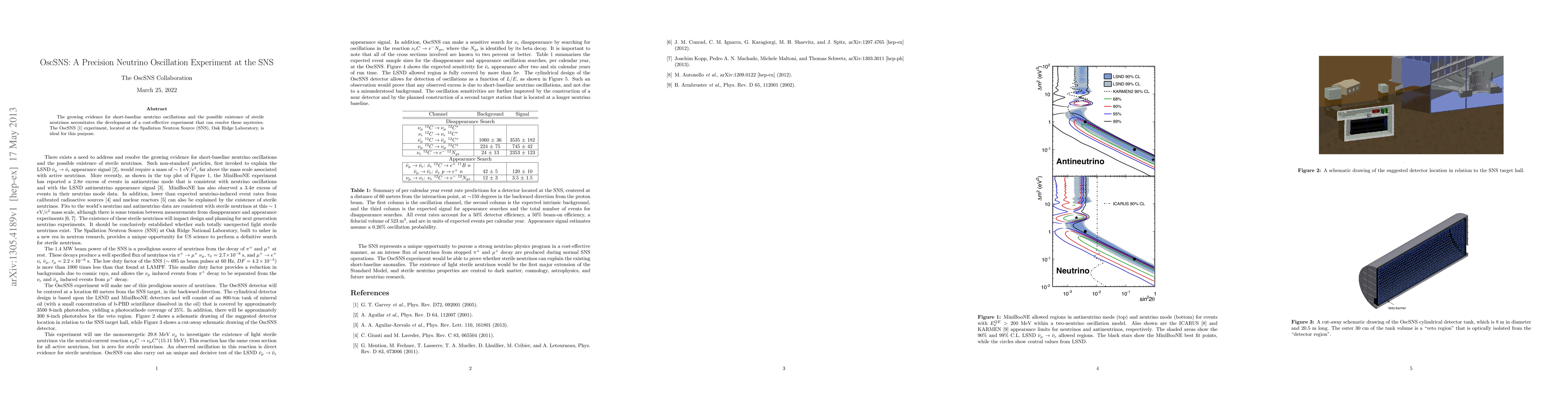 The OscSNS experiment at the Spallation Neutron Source aims to investigate short-baseline neutrino oscillations and the potential existence of sterile neutrinos in a cost-effective manner. This precision neutrino oscillation study seeks to resolve current mysteries in neutrino physics.