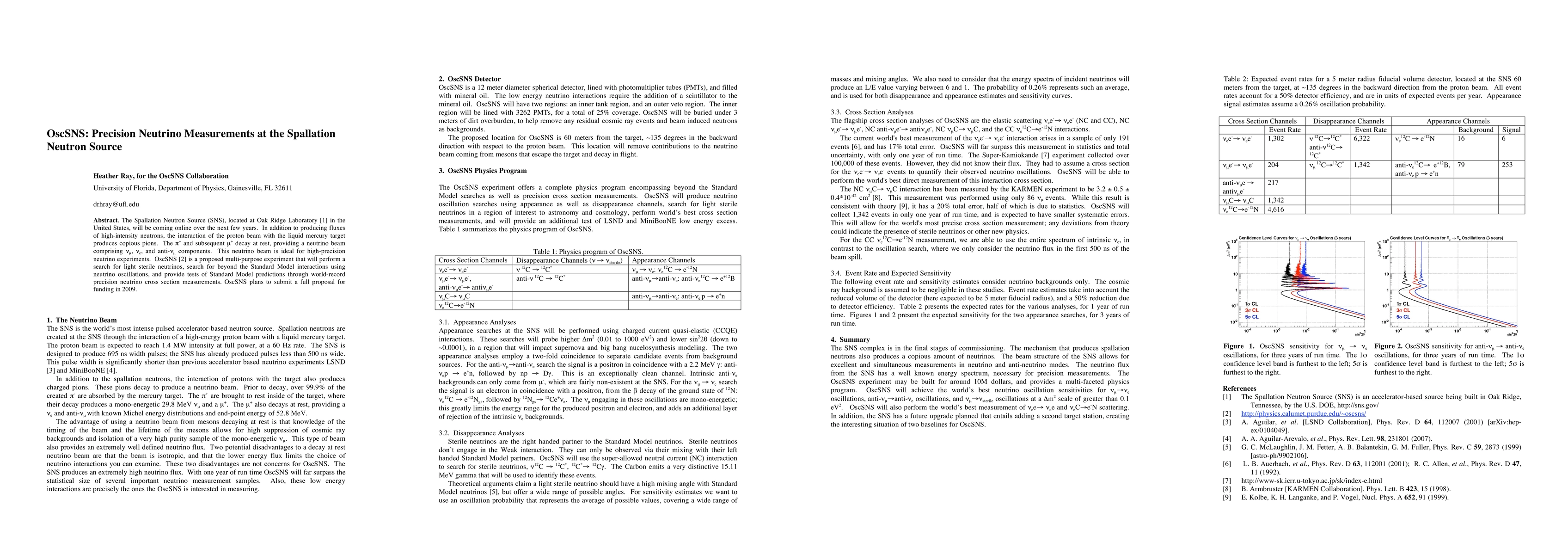 OscSNS aims to utilize the neutrino beam from the Spallation Neutron Source to search for light sterile neutrinos and beyond-Standard Model interactions, while also achieving unprecedented precision in neutrino cross section measurements. The experiment is set to submit a funding proposal in 2009.