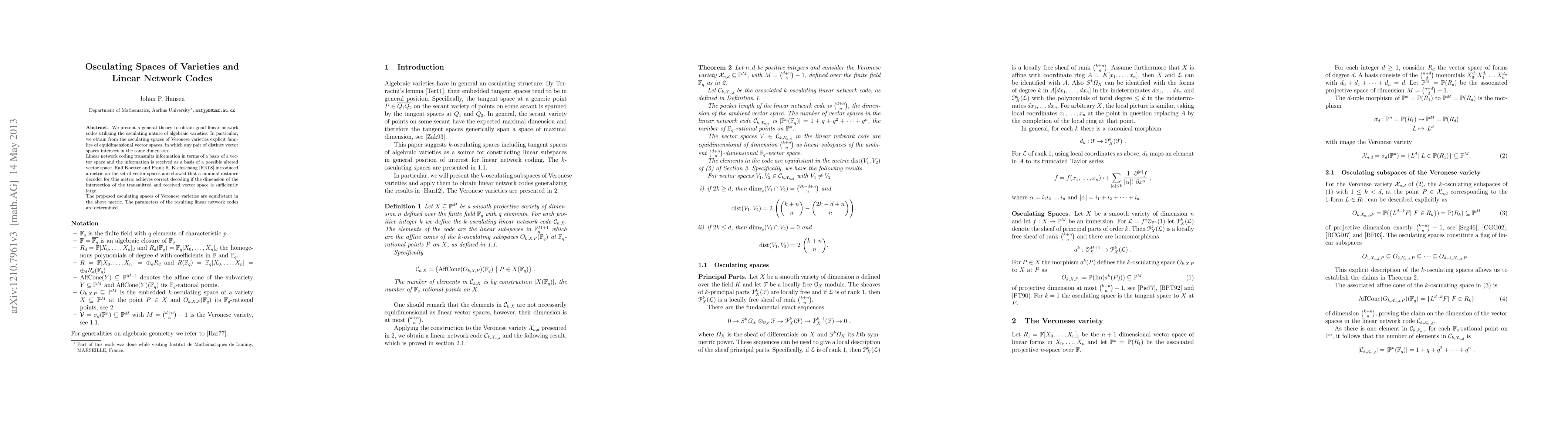 This paper develops a theory to create effective linear network codes by leveraging the osculating properties of algebraic Veronese varieties. It shows that these varieties yield families of equidimensional vector spaces with consistent intersection dimensions, thereby ensuring reliable decoding in network coding schemes.