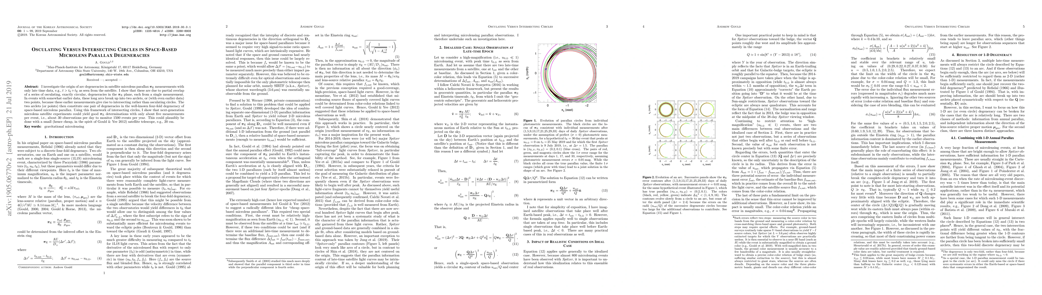 I investigate the origin of arc degeneracies in satellite microlens parallax pi_E measurements with only late time data, e.g., t > t0 + t_E as seen from the satellite. I show that these are due to partial overlap of a series of osculating, exactly circular, degeneracies in the pi_E plane, each from a single measurement. In events with somewhat earlier data, these long arcs break up into two arclets, or (with even earlier data) two points, because these earlier measurements give rise to intersecting rather than osculating circles. The two arclets (or points) then constitute one pair of degeneracies in the well-known four-fold degeneracy of space-based microlens parallax. Using this framework of intersecting circles, I show that next-generation microlens satellite experiments could yield good pi_E determinations with only about five measurements per event, i.e., about 30 observations per day to monitor 1500 events per year. This could plausibly be done with a small (hence cheap, in the spirit of Gould & Yee 2012) satellite telescope, e.g., 20 cm.
