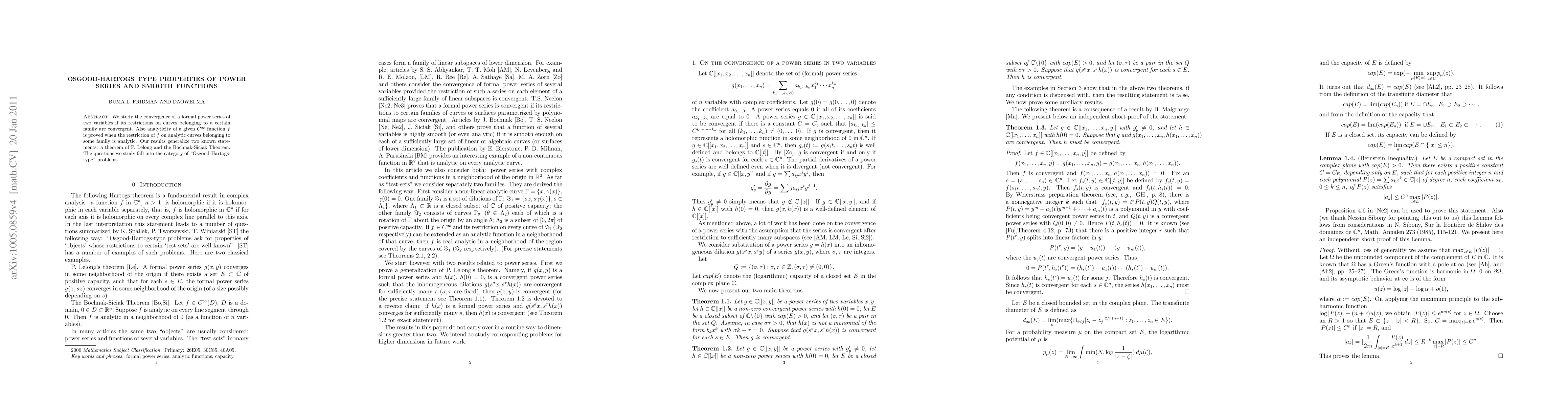 We study the convergence of a formal power series of two variables if its restrictions on curves belonging to a certain family are convergent. Also analyticity of a given $C^\infty $ function $f$ is proved when the restriction of $f$ on analytic curves belonging to some family is analytic. Our results generalize two known statements: a theorem of P. Lelong and the Bochnak-Siciak Theorem. The questions we study fall into the category of "Osgood-Hartogs-type" problems.
