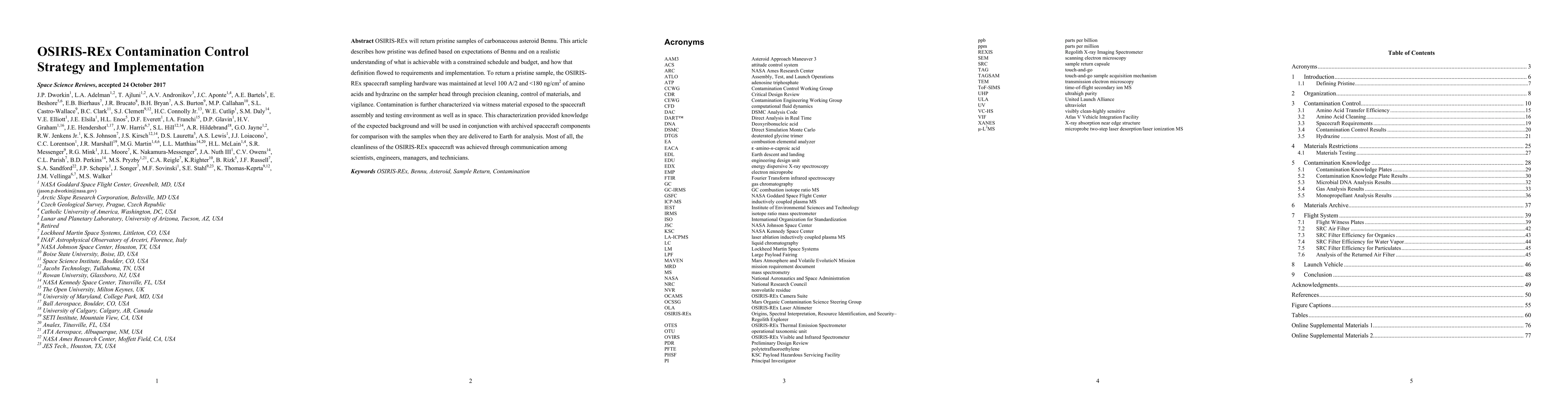 The OSIRIS-REx spacecraft successfully implemented a contamination control strategy to return pristine samples from asteroid Bennu, ensuring low levels of amino acids and hydrazine in the sampler head.
