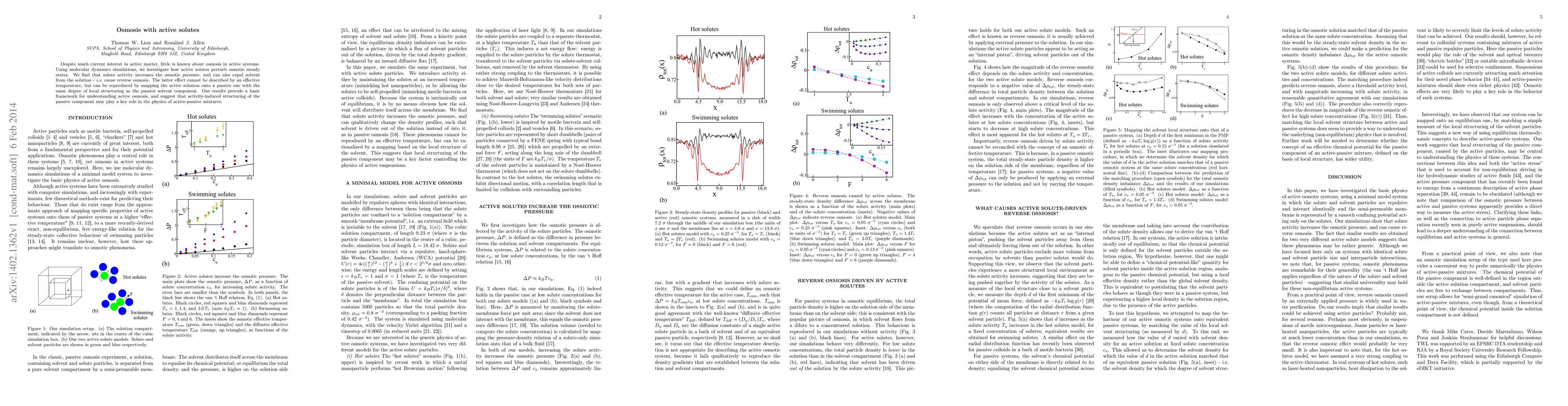 Despite much current interest in active matter, little is known about osmosis in active systems. Using molecular dynamics simulations, we investigate how active solutes perturb osmotic steady states. We find that solute activity increases the osmotic pressure, and can also expel solvent from the solution - i.e. cause reverse osmosis. The latter effect cannot be described by an effective temperature, but can be reproduced by mapping the active solution onto a passive one with the same degree of local structuring as the passive solvent component. Our results provide a basic framework for understanding active osmosis, and suggest that activity-induced structuring of the passive component may play a key role in the physics of active-passive mixtures.